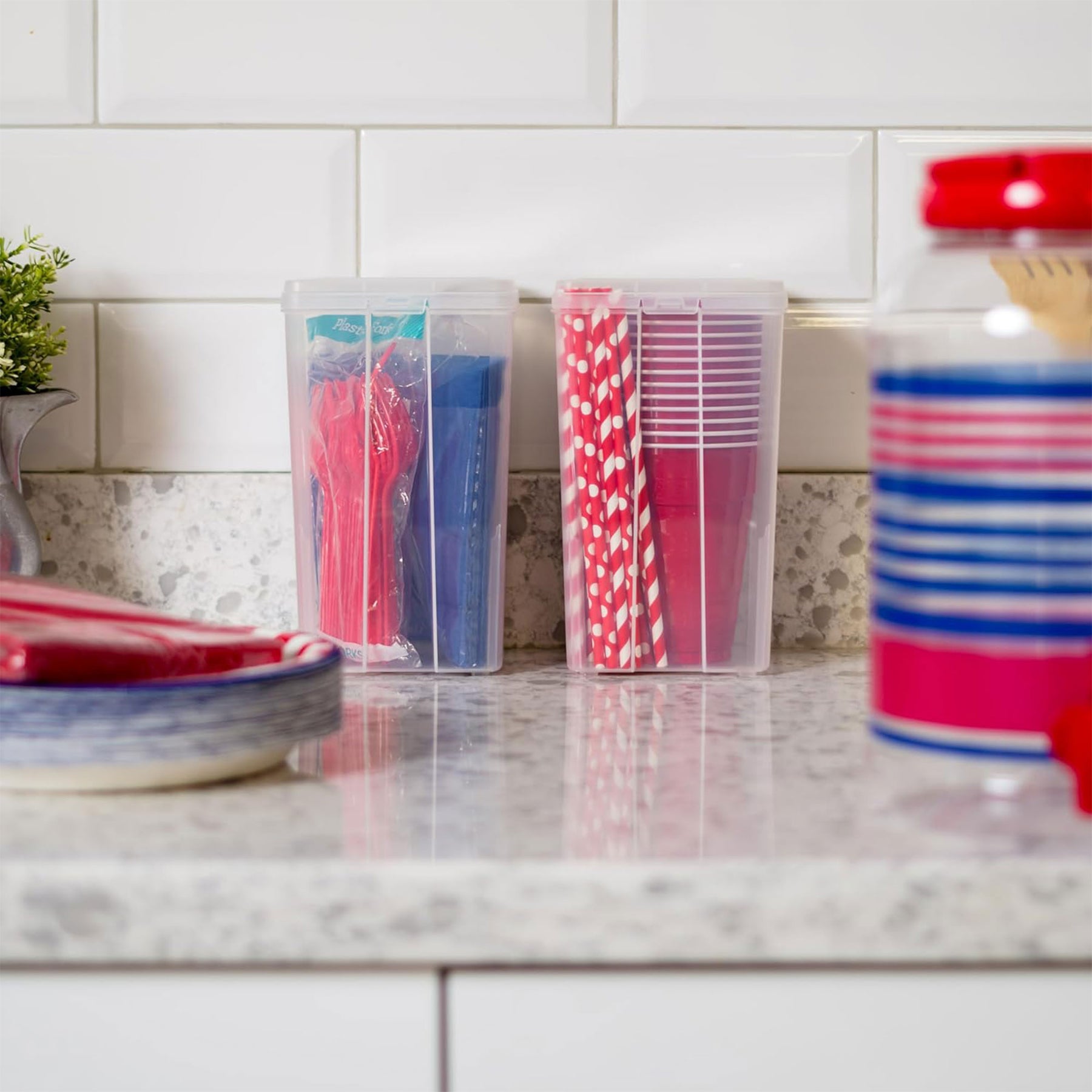 • Smooth plastic surface wipres clean effortlessly while the removable lids make it simple to keep storage fresh