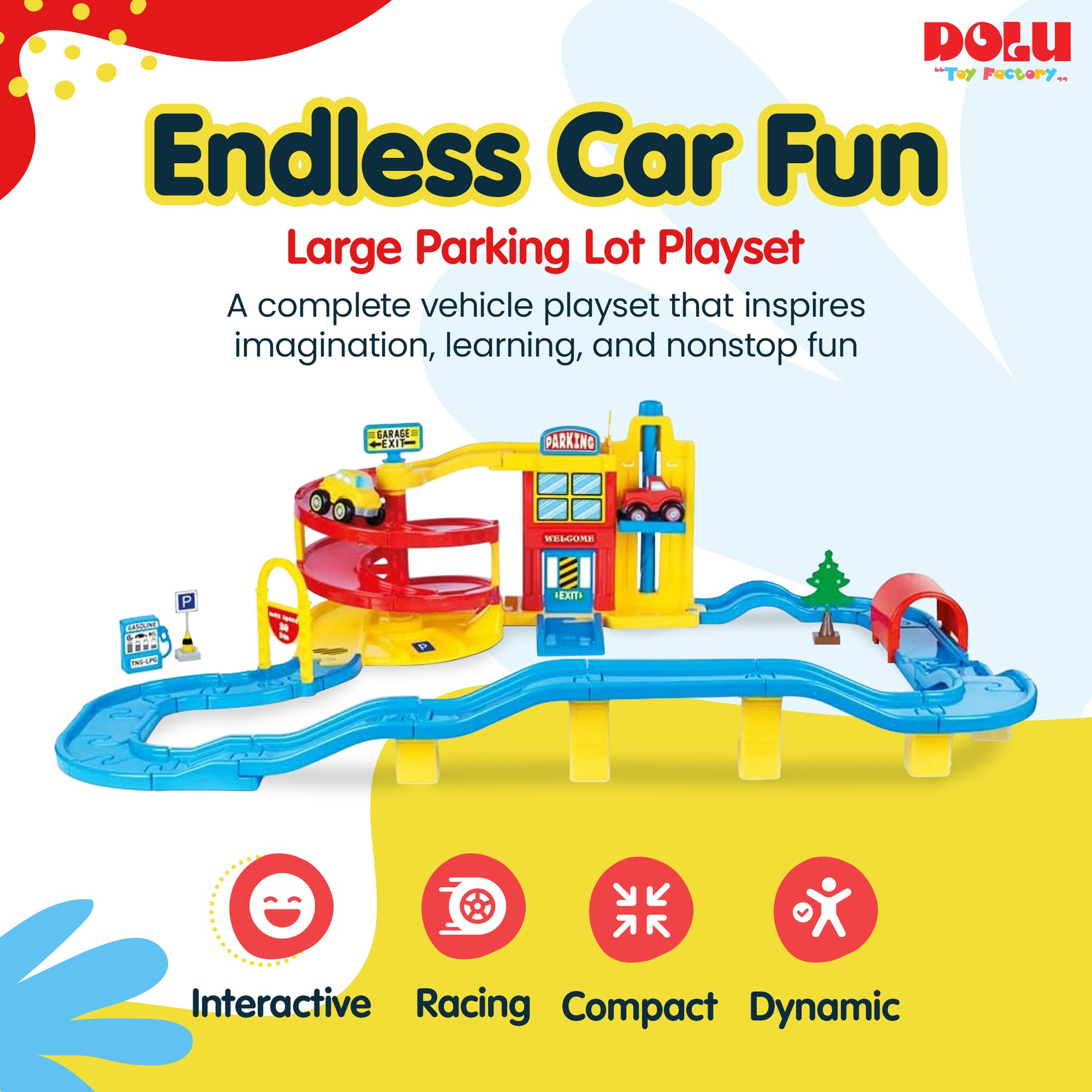 DOLU Large Parking Lot Garage Playset for Kids, Car Toy with Ramp and Elevator