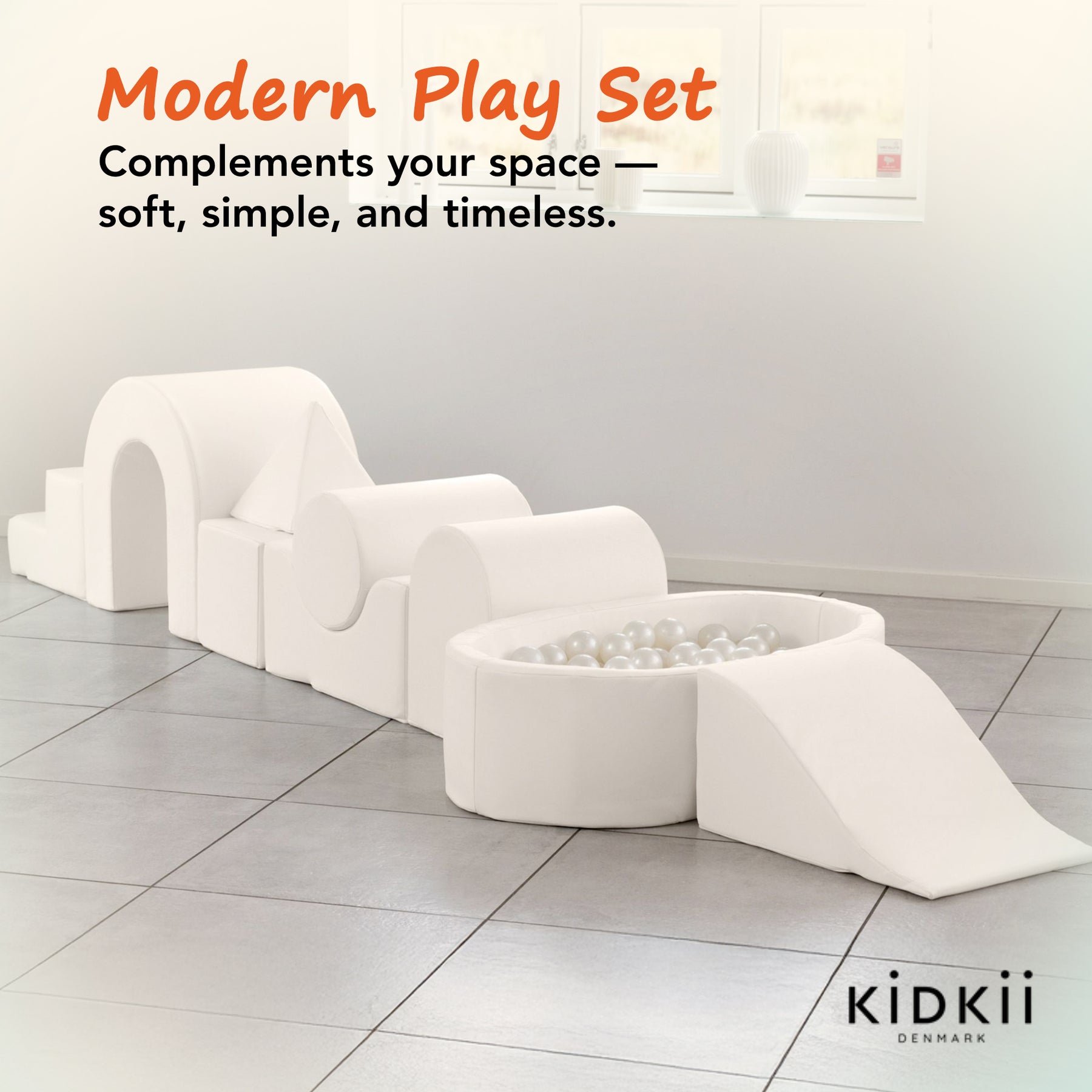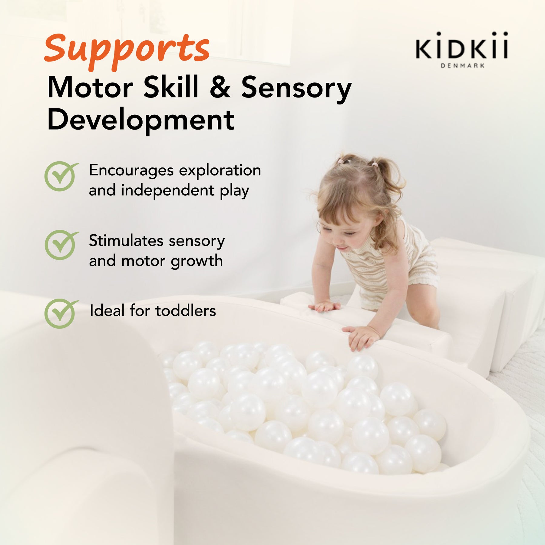 The KIDKII Lux Play Set is an 9-piece indoor foam climbing and ball pit set thoughtfully designed for toddlers to explore movement, balance, and sensory play in a safe and stylish environment. This premium activity kit promotes gross motor skill development through climbing, crawling, and imaginative obstacle play, making it a favorite among parents and educators seeking Montessori-inspired tools for active learning.