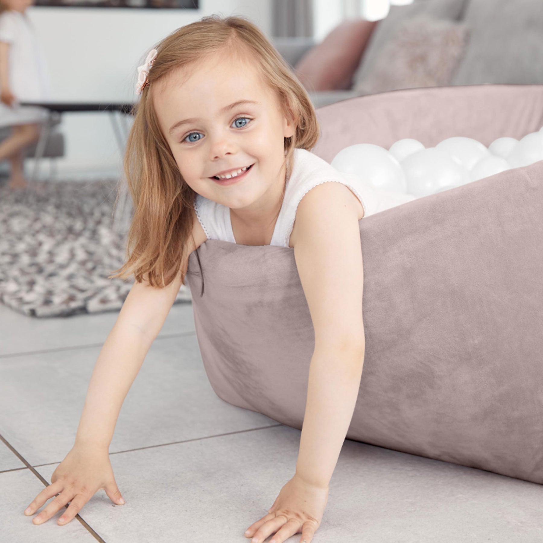 The KIDKII Round Ball Pit is designed to create joyful and meaningful play experiences for babies and toddlers. With its soft foam structure wrapped in a velvet cover, this indoor play piece offers a safe, inviting space for little ones to explore movement, develop coordination, and enjoy hours of interactive fun. Its round shape provides a comfortable environment where children can climb in, crawl, or simply immerse themselves in play.