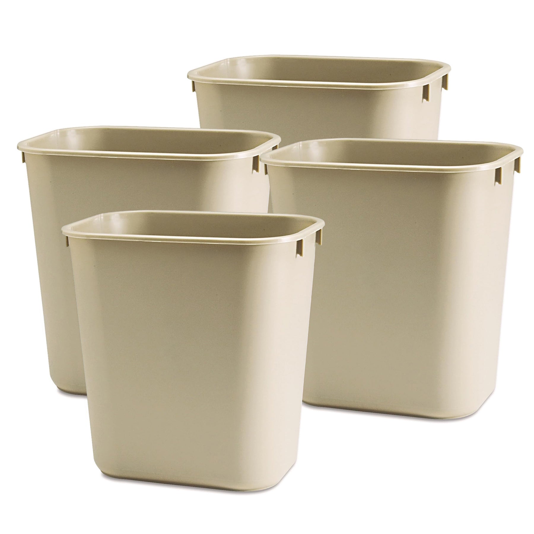 Rubbermaid Deskside Wastebasket, Plastic Trash Can, 3.5 Gallon, Beige, 4 Pack