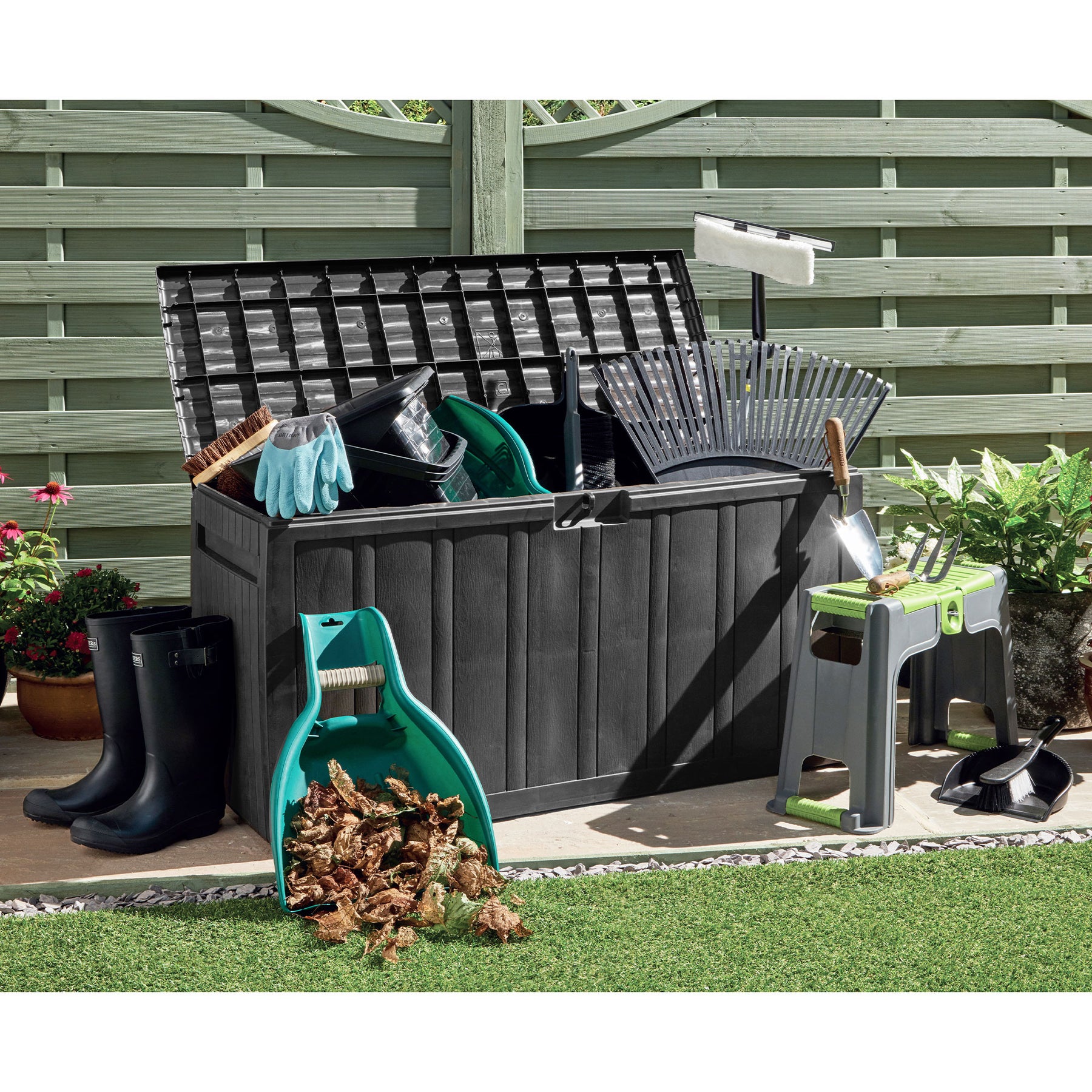 • Extra large 71-gallon patio storage box helps organize your outdoor accessories, tools, toys, and more