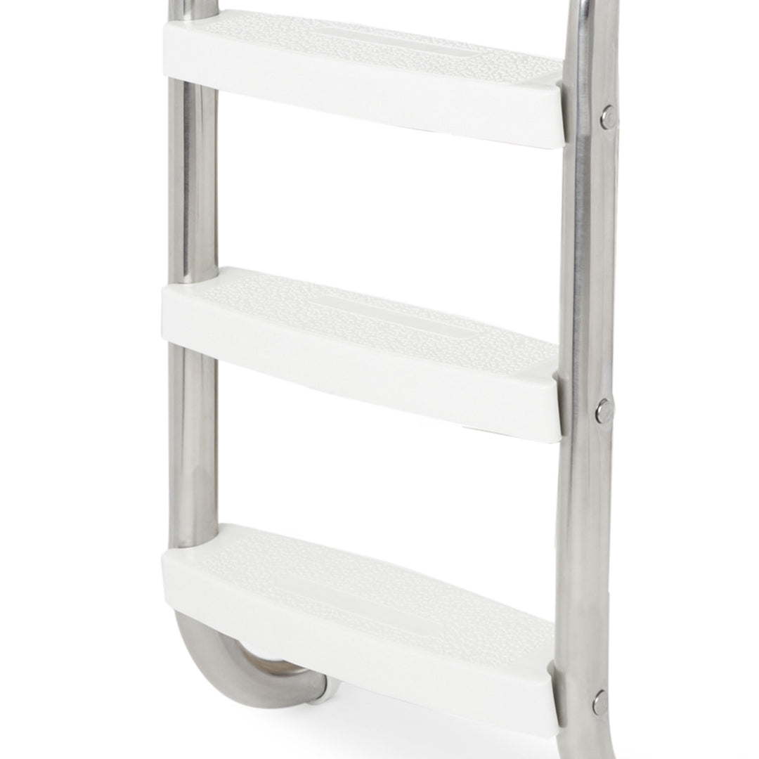Enjoy a sparkling pool that is easy to enjoy by friends and family, young and old, with the HydroTools 3 Step Inground Swimming Pool Stainless Steel Ladder Steps from Swimline.