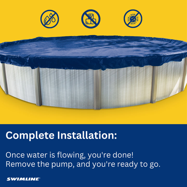The extra build-up of water on top of your pool cover can make maintenance and removal a total hassle at the start of the season. Heavy water weights down the cover, allowing for gaps that make water maintenance more difficult, or making it too difficult to remove the cover at the start of the season. Using this manual siphon, you'll be able to avoid cumbersome cover removals and get to enjoying your pool faster.
