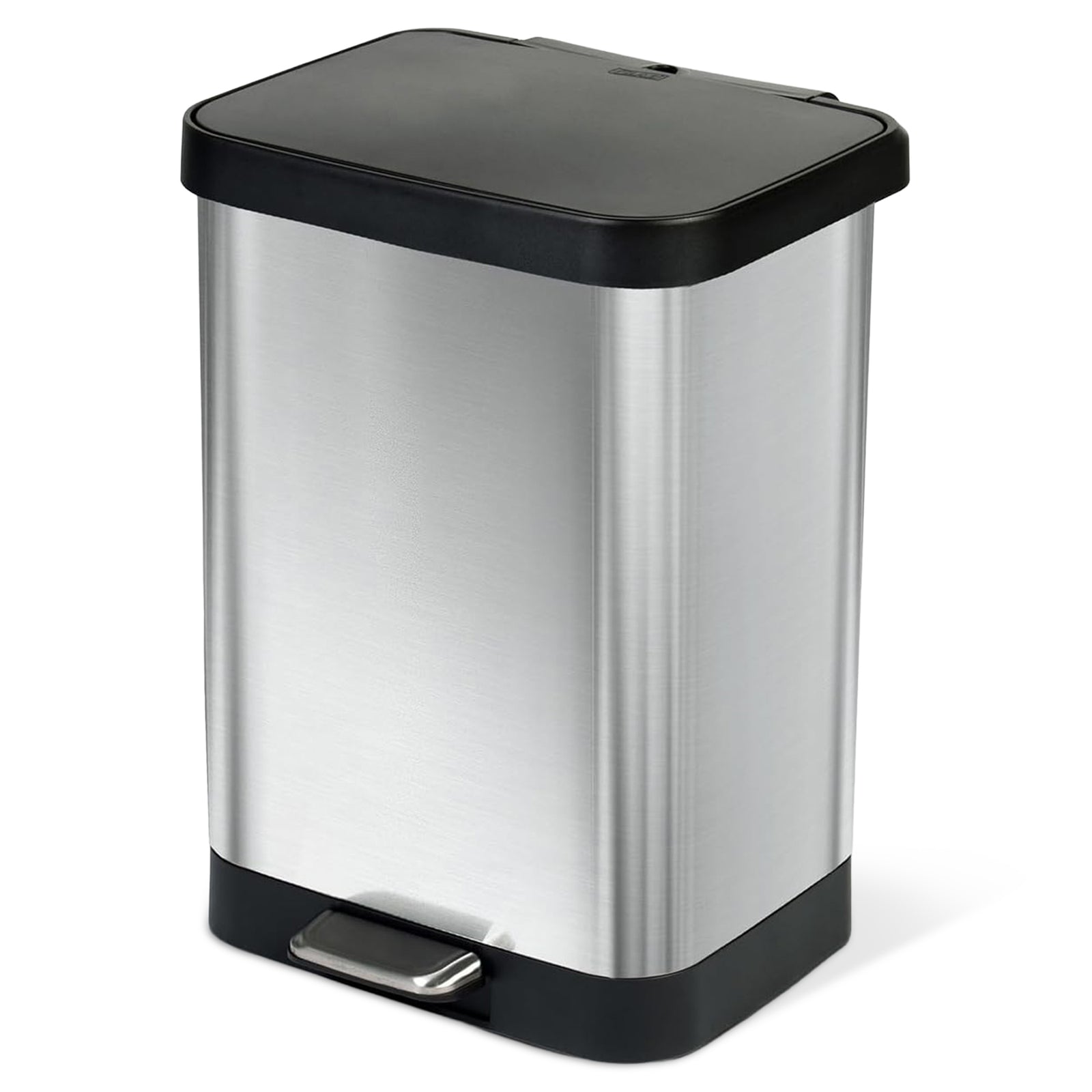 Glad Step Trash Can, Soft Close Lid Bin with Odor Protection, 13 Gal, Stainless