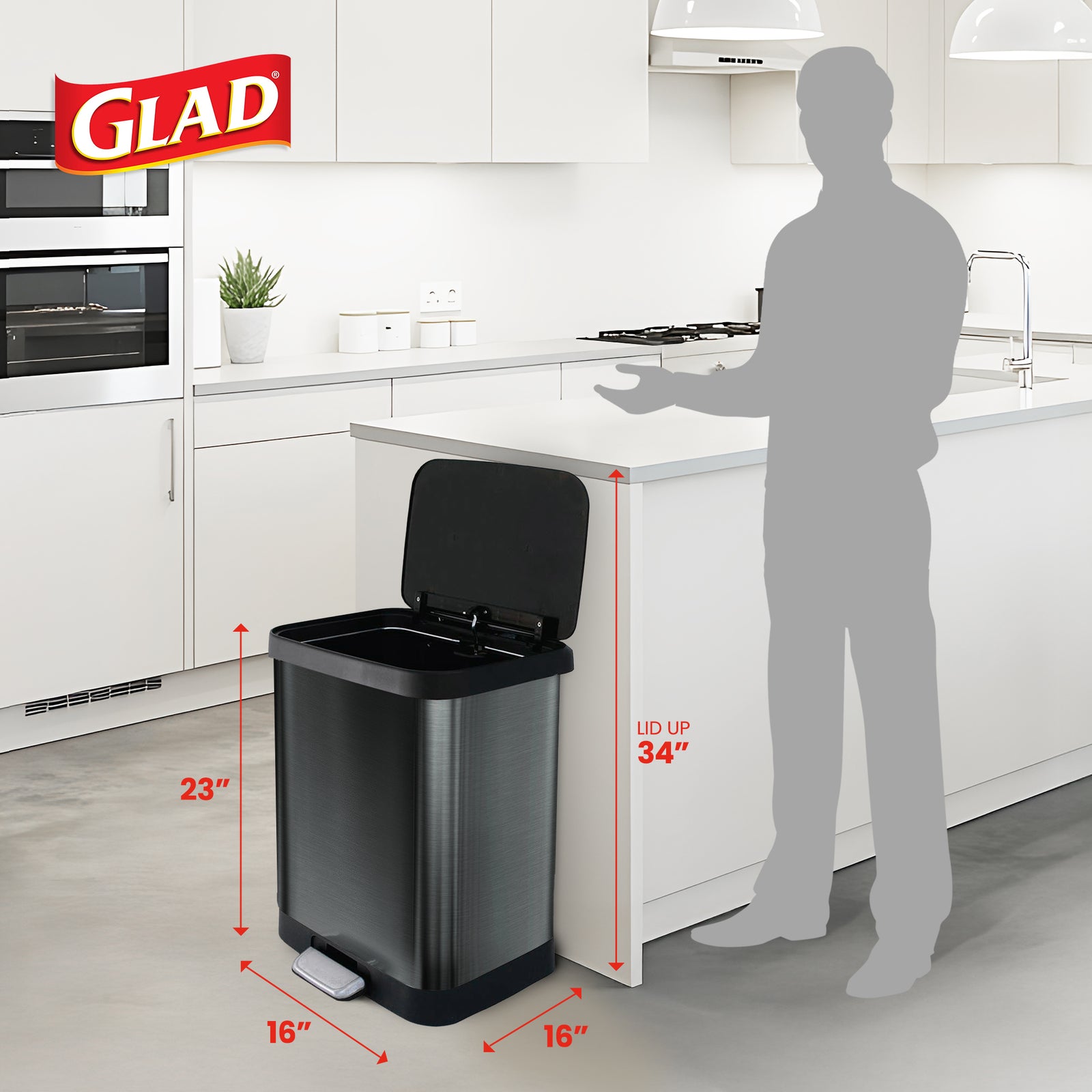 Glad Trash Can with Lid, Stainless Foot Pedal & Garbage Bag Rings, 13 Gal, Black