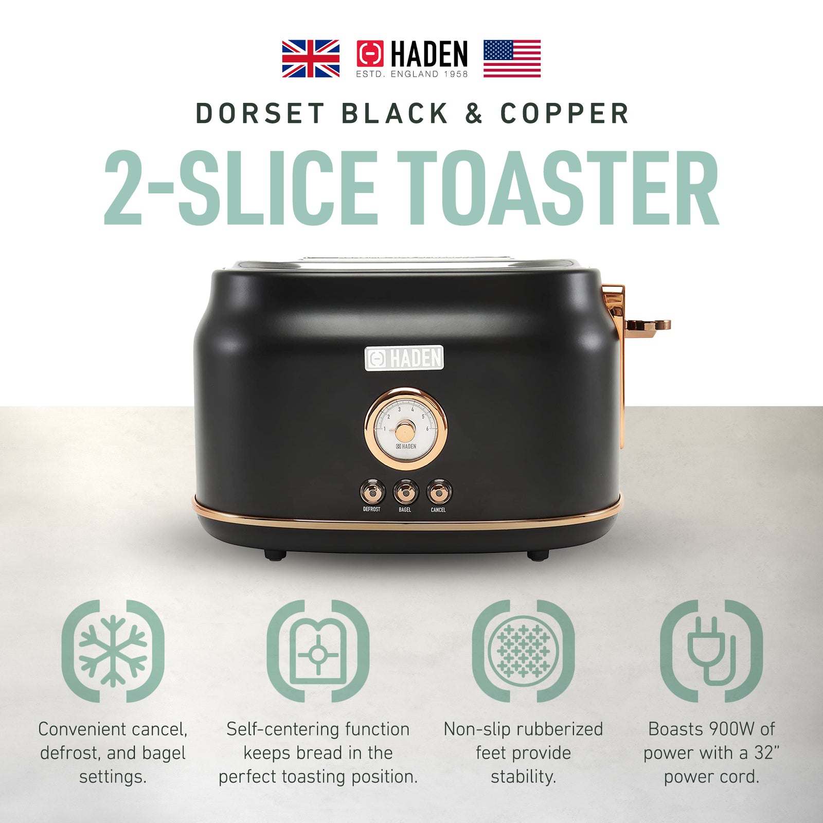 Haden Dorset 2 Slice Wide Slot Stainless Steel Toaster, Black/Copper (Open Box)