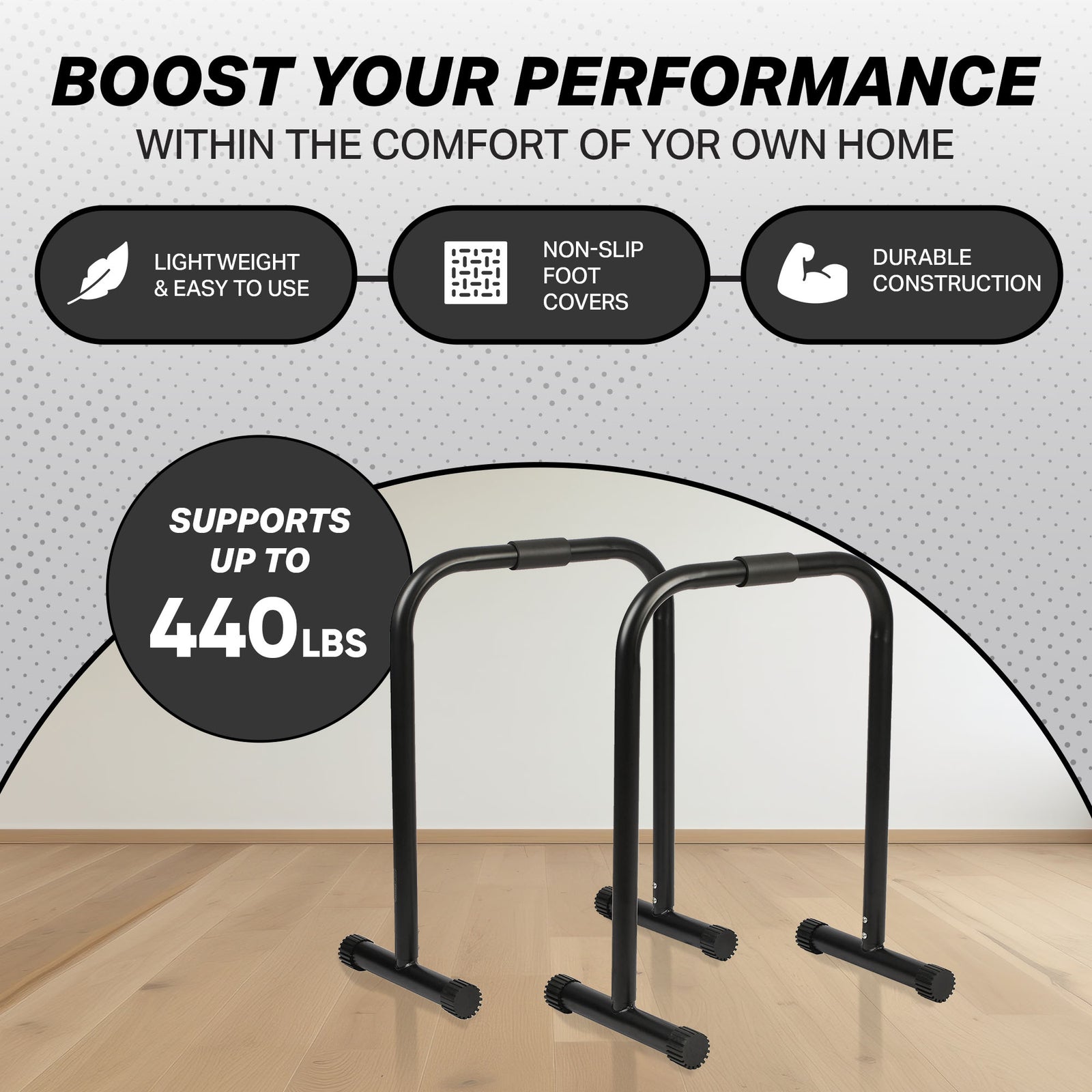 HolaHatha Dip Station Bar with Adjustable Foot and Non Slip Foot Covers (Used)
