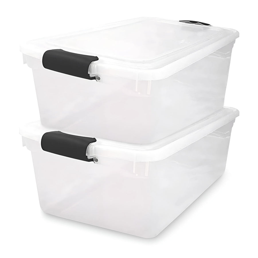 Homz 64 Qt Clear Storage Container w/Latching Lids, (2 Pack) (Open Box)