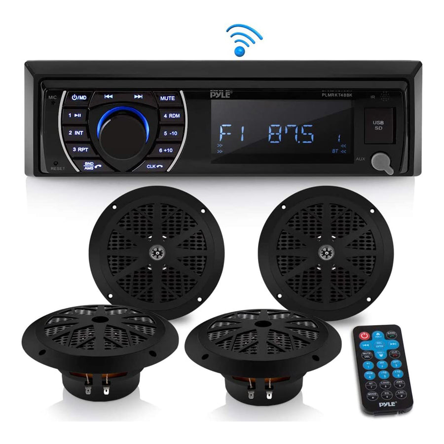 Pyle 6.5 Inch Bluetooth Marine Receiver Stereo and Speaker Kit, Black (Open Box)