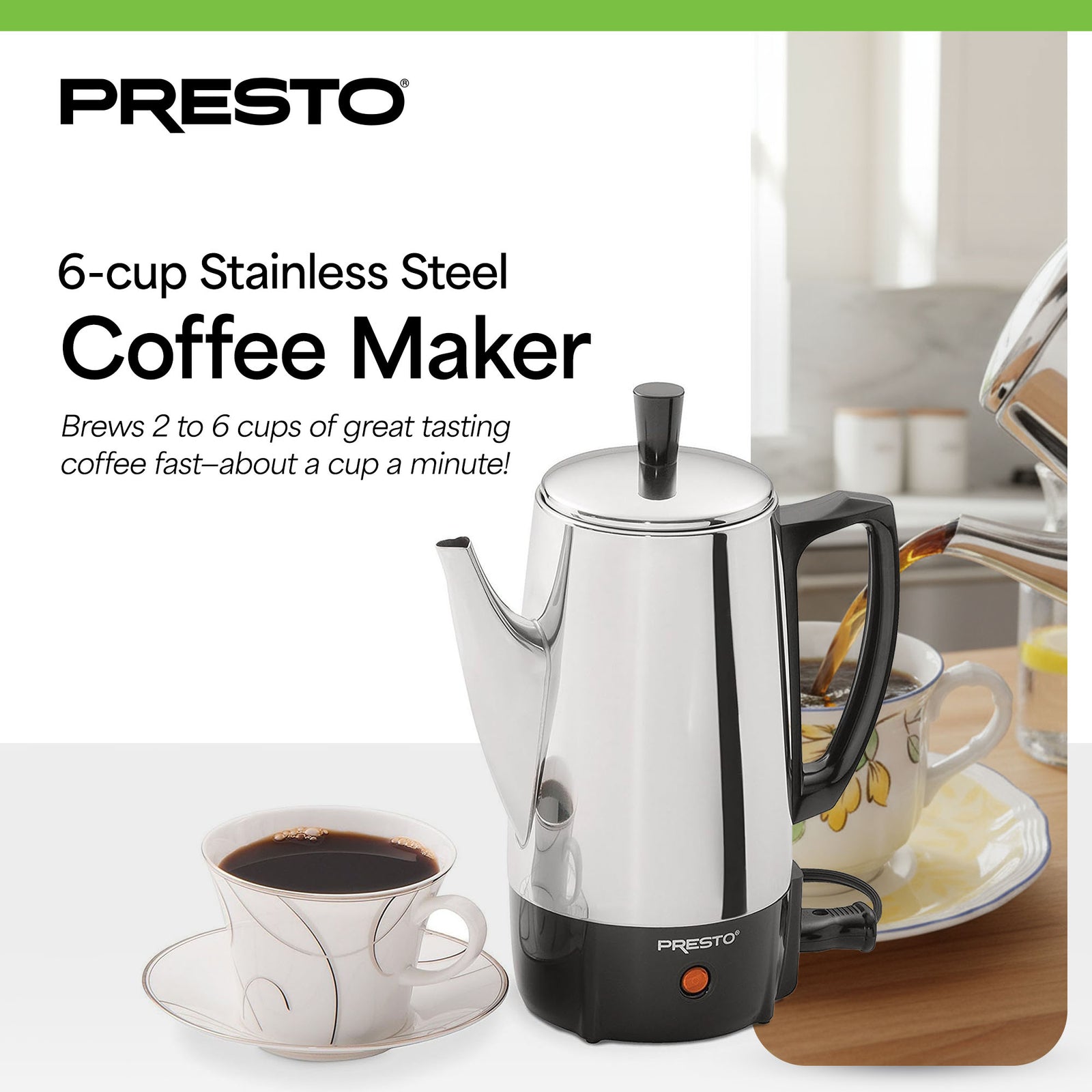 Presto Stainless Steel Coffee Maker, Classic Percolator, Easy Pour (Open Box)