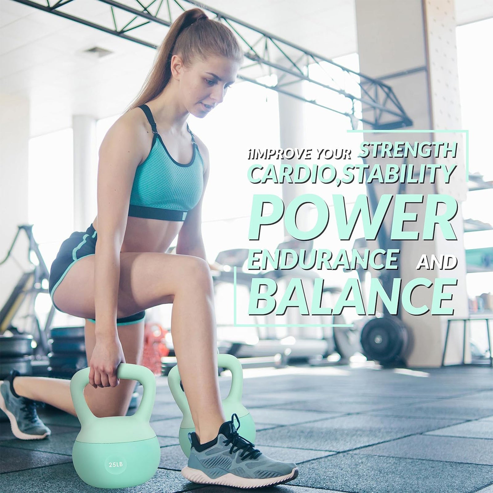 Fitvids Soft Kettlebell Ergonomic Grip, Iron & Sand Filled, 25 Pounds, Green