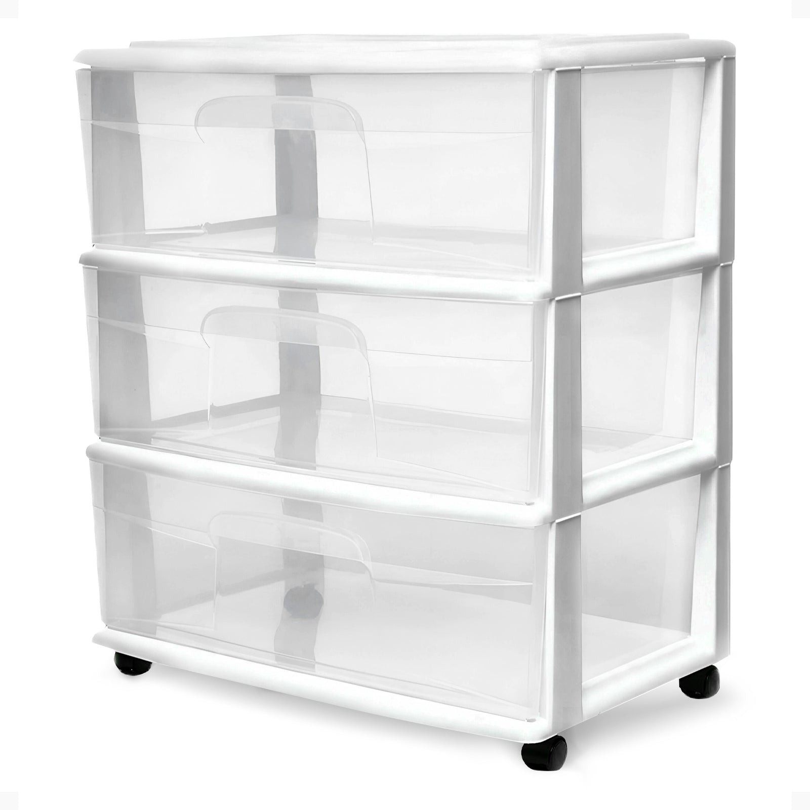 Homz Plastic 3 Clear Drawer Small Rolling Container Tower, White Frame(Open Box)