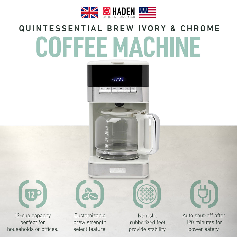 Haden Quintessential 12 Cup Programmable Digital Coffee Maker,Ivory/Chrome(Used)