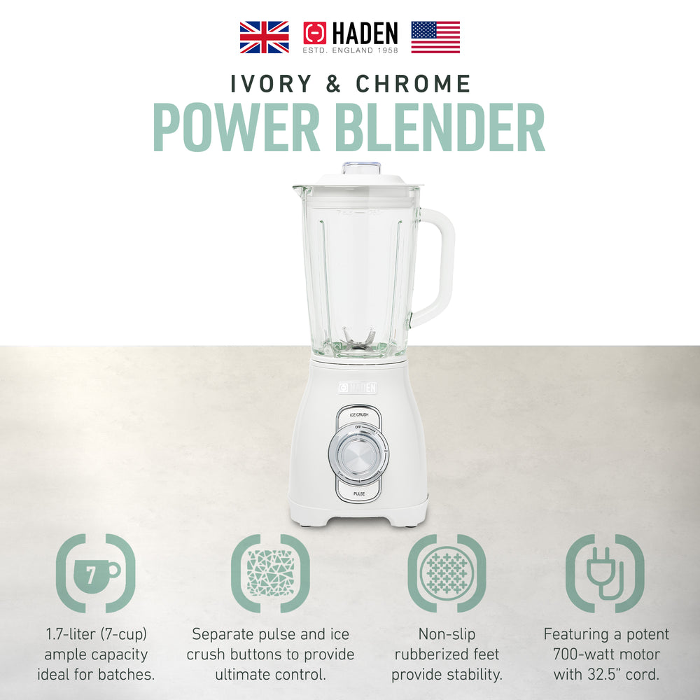 Haden Stainless 1.75L Glass 700W Motor Power Blender, Ivory/Chrome (Open Box)