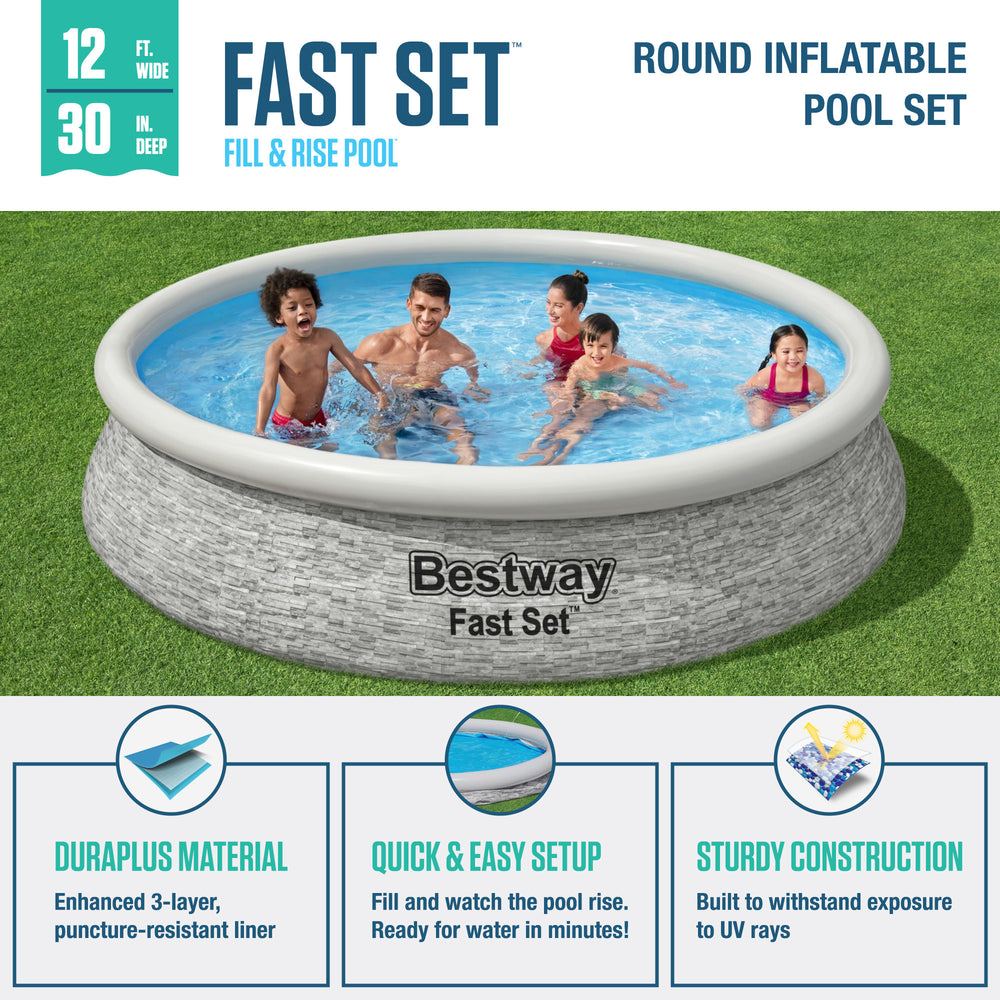 Bestway Fast Set 12' x 30" Round Inflatable Stacked Stone Swimming Pool Set