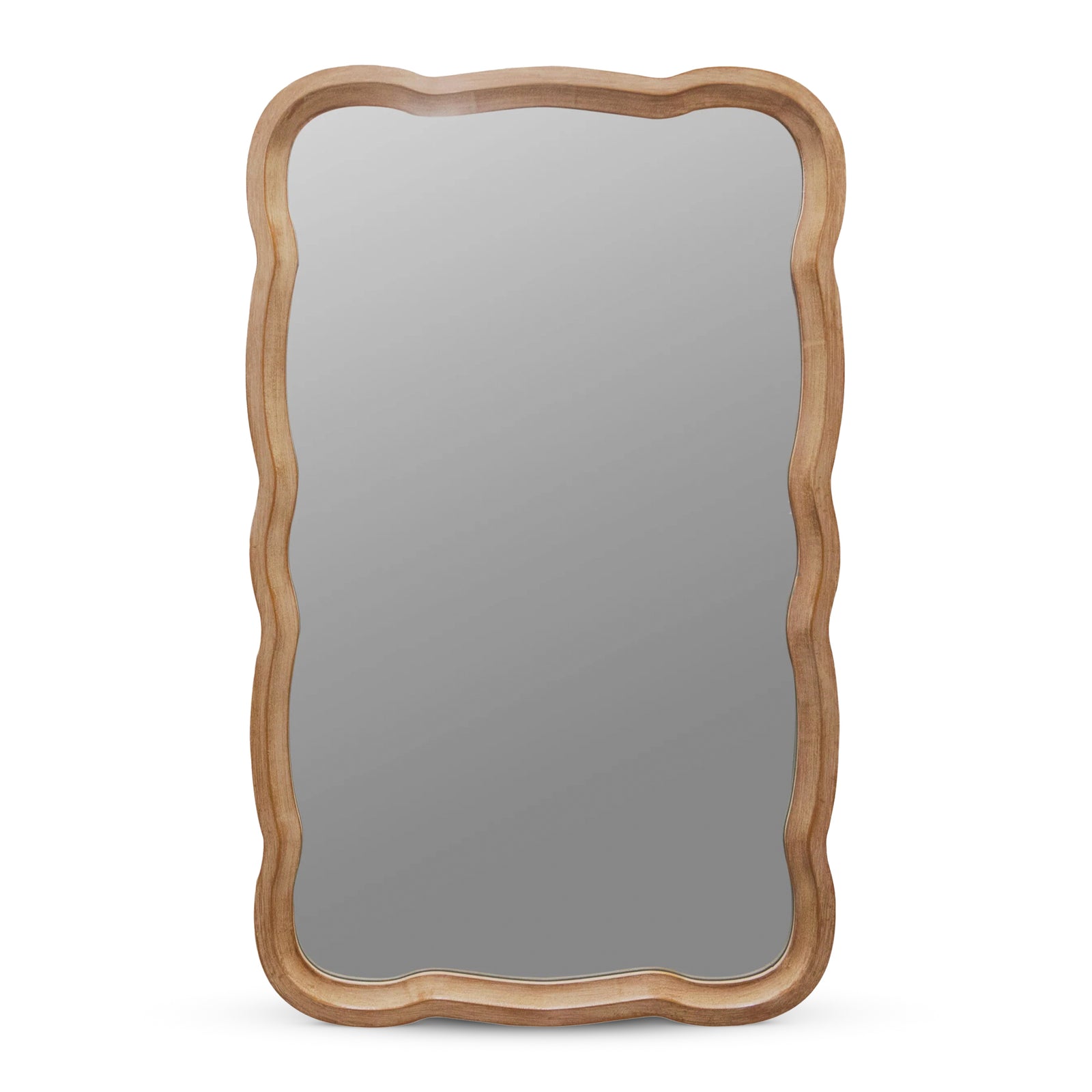 COZAYH Curved Wood Frame Accent Mirror, Modern Farmhouse Wall Decor, Natural