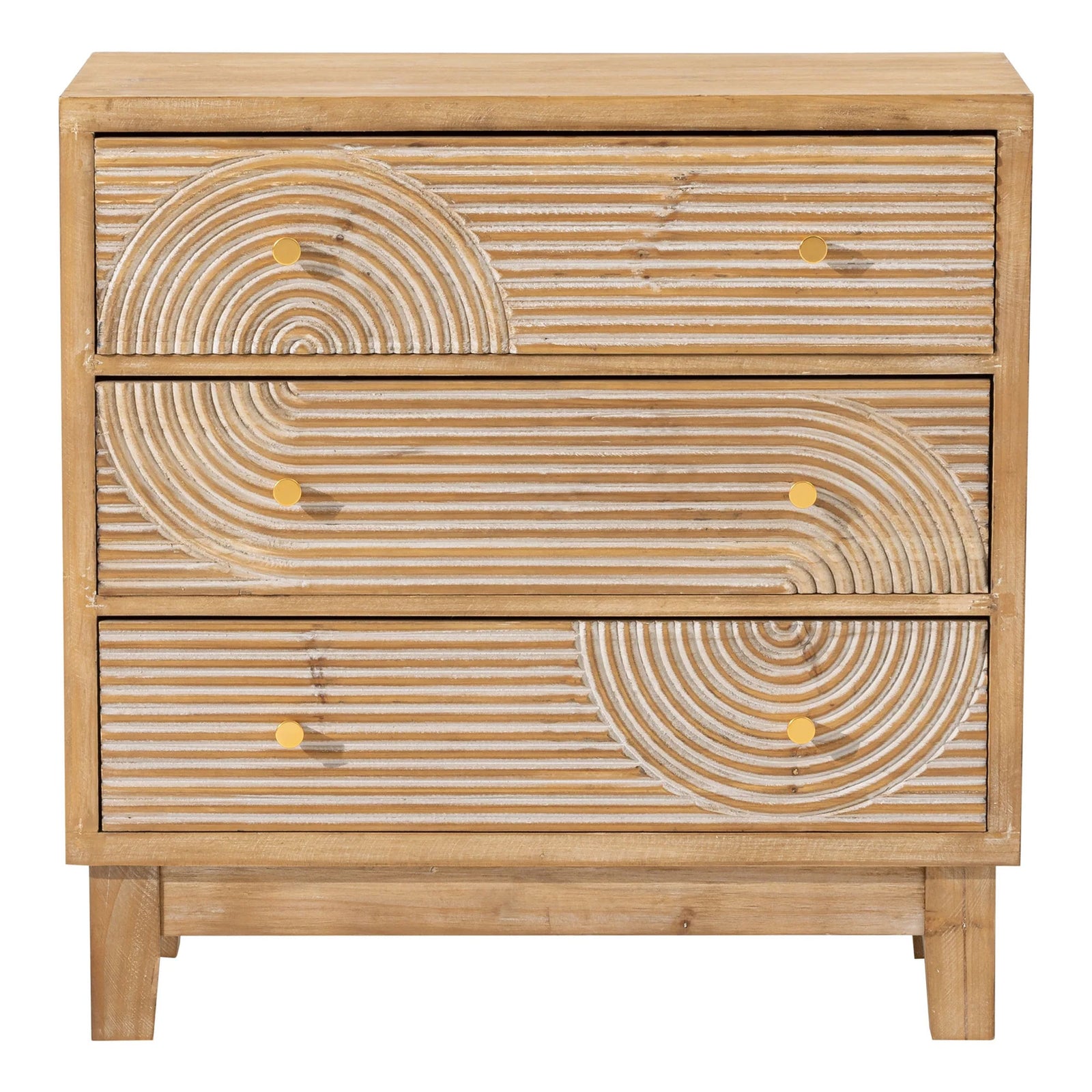 COZAYH 3-Drawer Farmhouse Dresser, Rustic Ring Motif Nightstand, Natural Wood