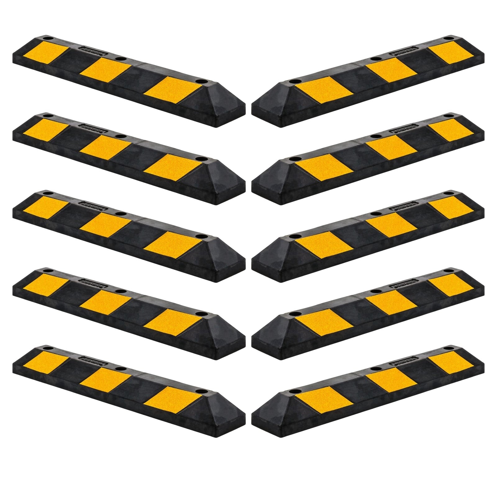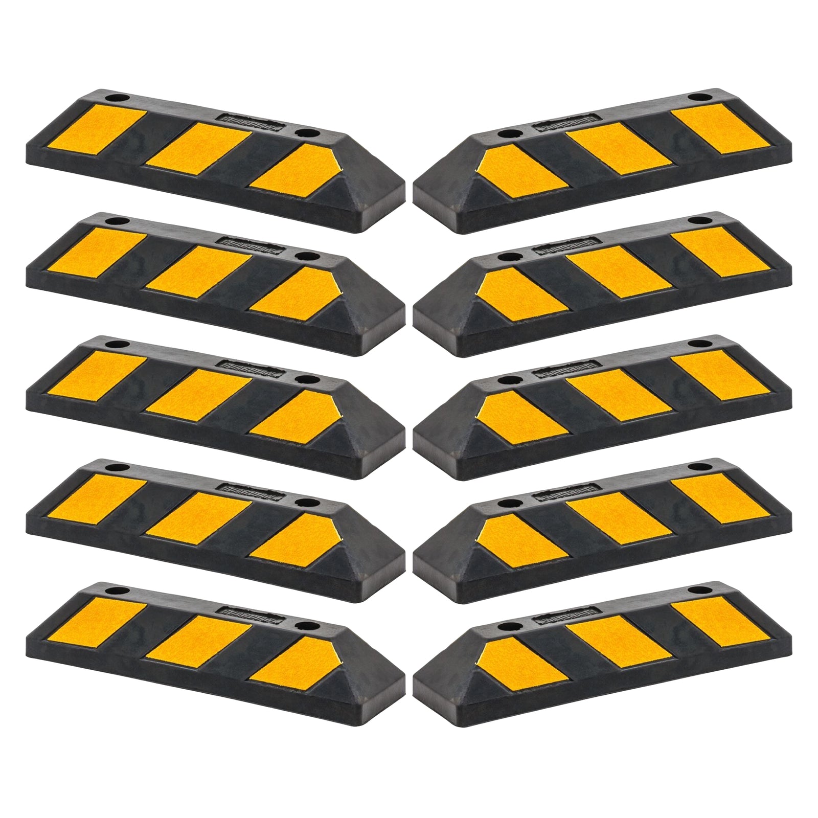 Guardian Parking Stop, 2Ft Rubber Curb w/ Mounting Holes, Black/Yellow, 10 Pack