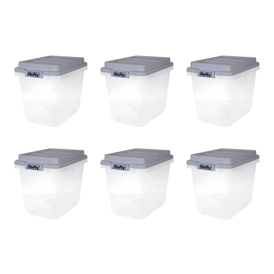Hefty 72 Qt Hi-Rise Stackable Plastic Storage Bin with Lid, 6 Pack, Quarry Gray