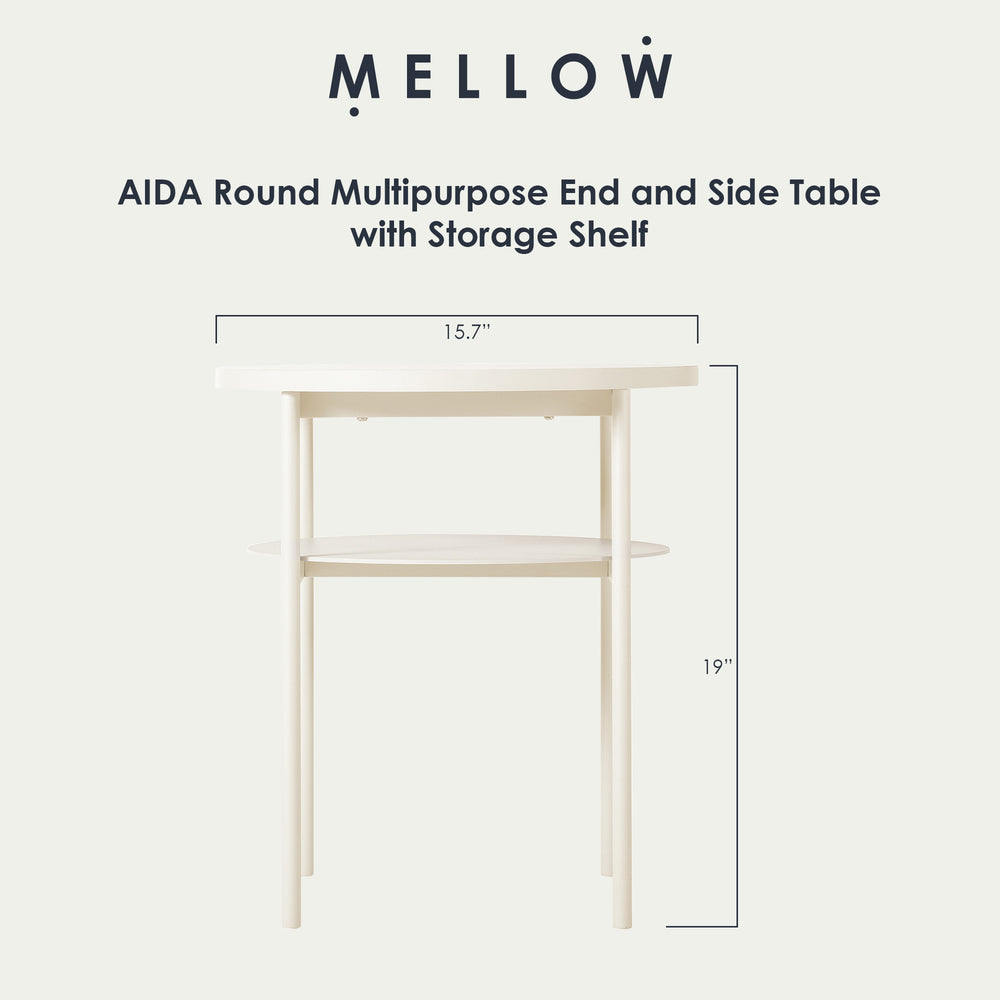 Mellow AIDA Round Multipurpose End and Side Table with Storage Shelf, Beige
