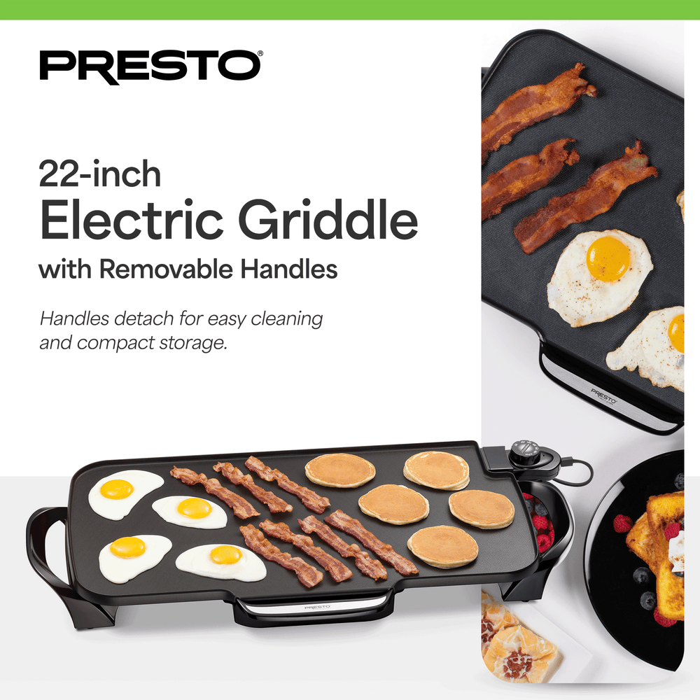 Presto 22" Electric Griddle with Removable Handles and Nonstick Cooking Surface