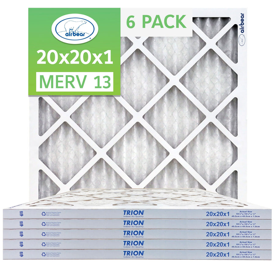 Trion MERV 13 Air Bear 20 x 20 x 1" HE Pleated HVAC Filter, 6 Pack (Open Box)