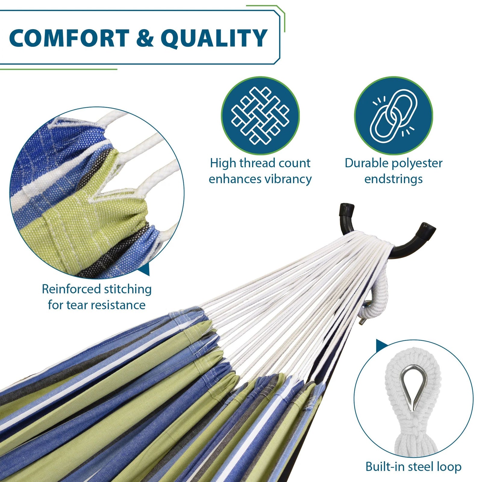 Vivere Brazilian Style Double Cotton Hammock, Outdoor Hanging Daybed, Serenity
