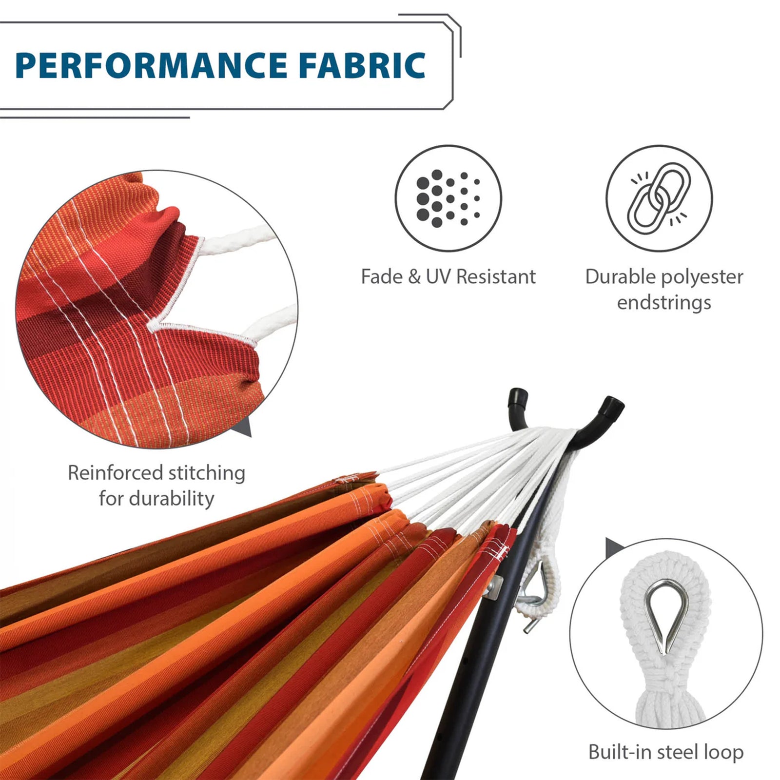 Vivere Brazilian Style Sunbrella Double Hammock with Steel Stand Combo, Sunset