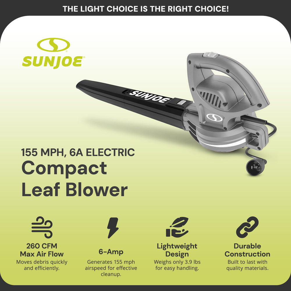 Sun Joe Electric All Purpose Leaf Blower, 6 Amp Motor, 155MPH Air Speed (Used)