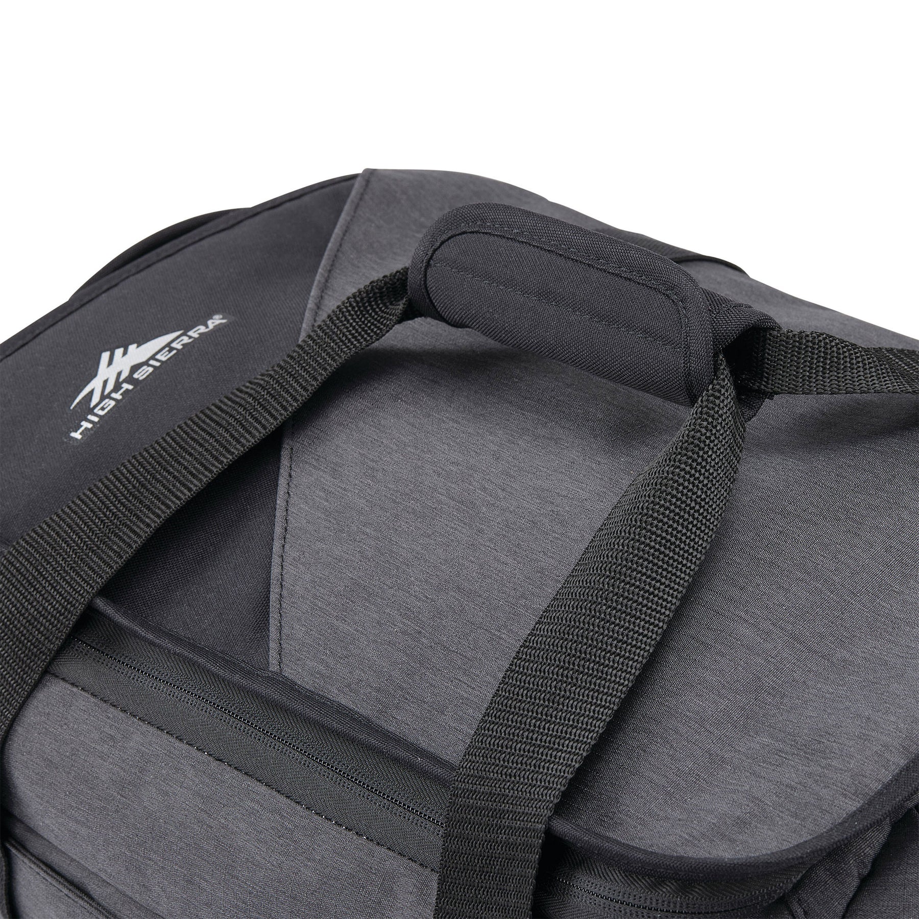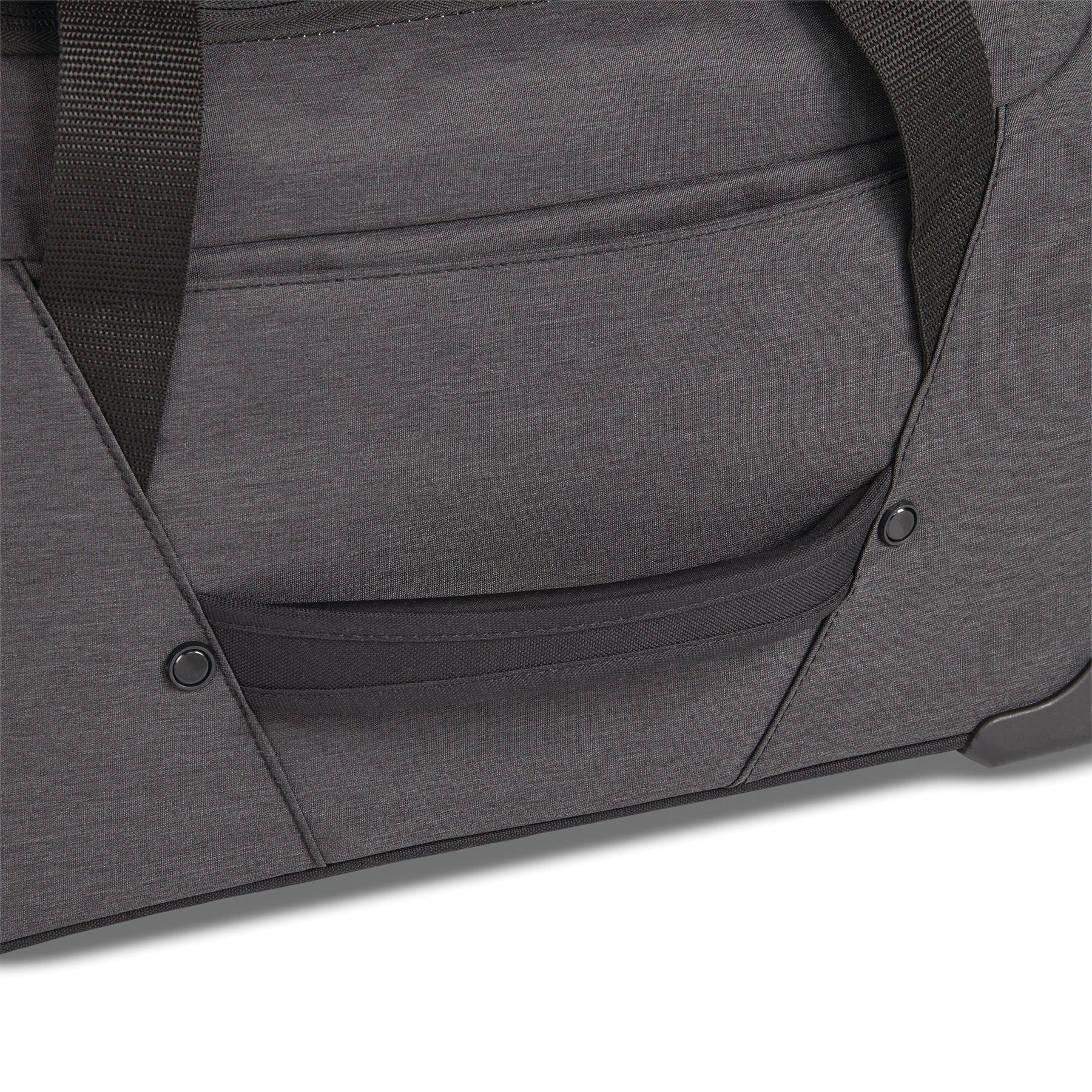 • Wheeled duffel bag with exterior padded grab handles for versatile mobility and transportation