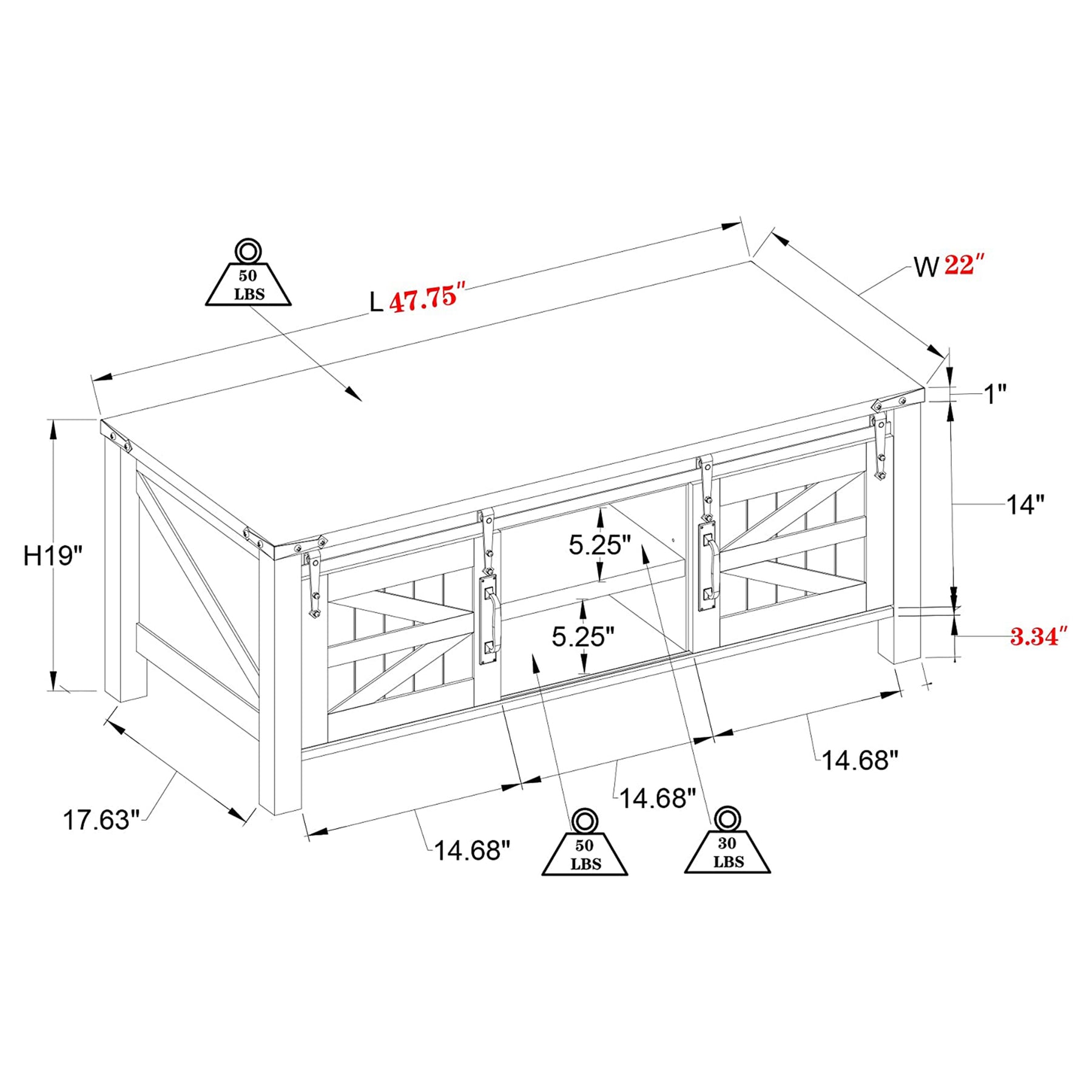 48 Inch Coffee Table with Sliding Barn Doors, Light Rustic Oak (Open Box)