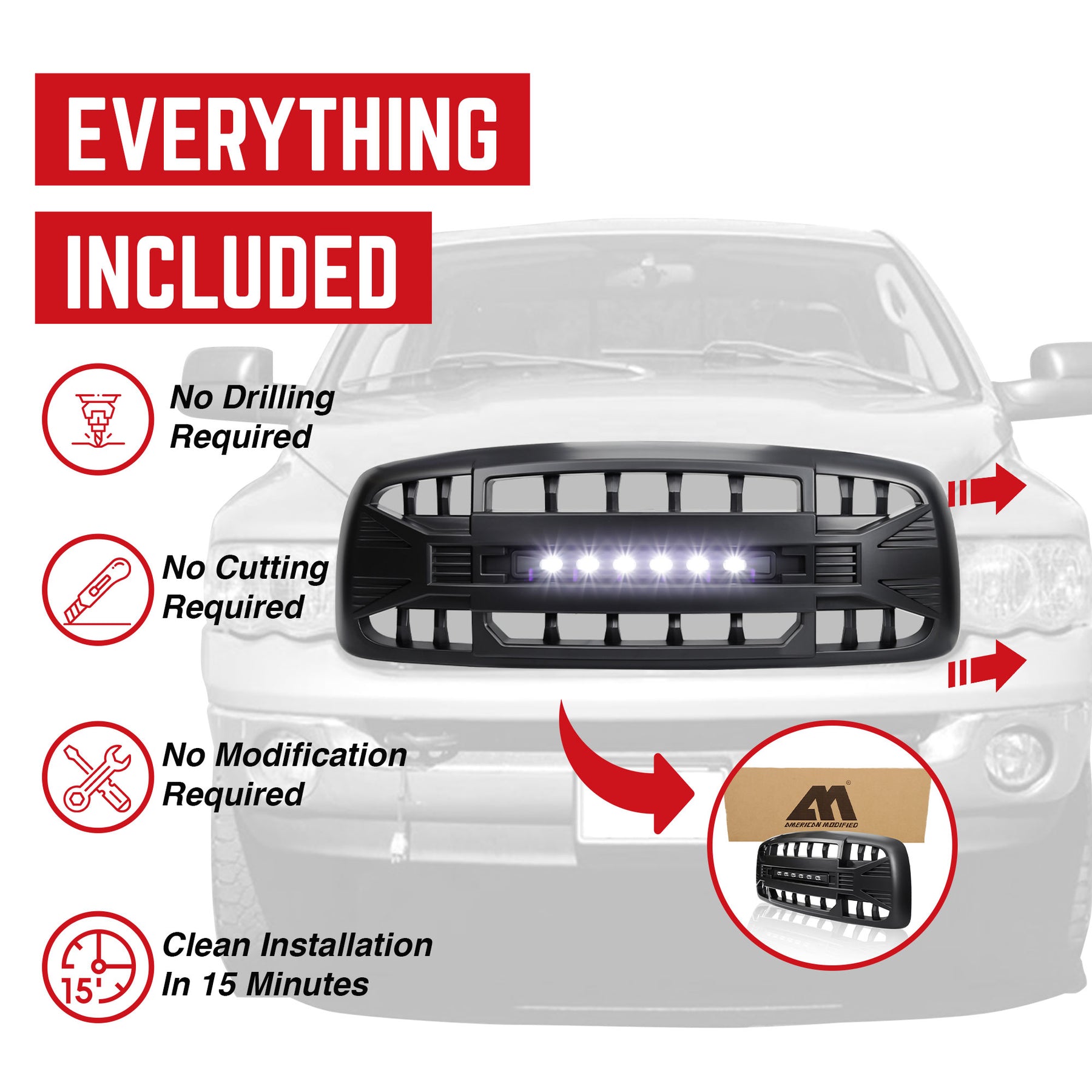 • Designed as a direct fit replacement for the factory grille, requiring no cutting or modifications, for a straightforward and clean install