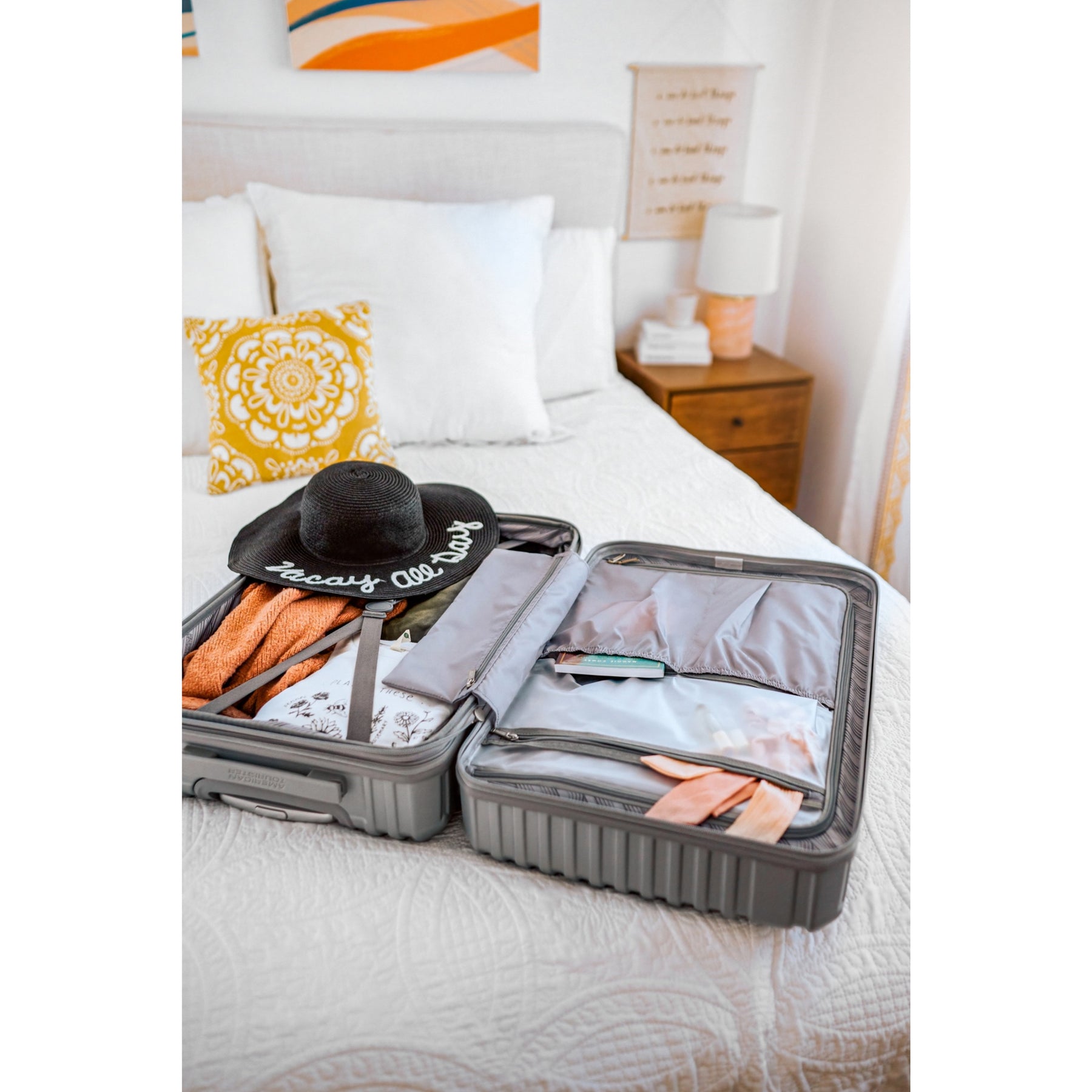 • Hardside luggage set with 20-inch carry-on and 24-inch checked bag combines functionality, durability, and style to elevate your travel experience