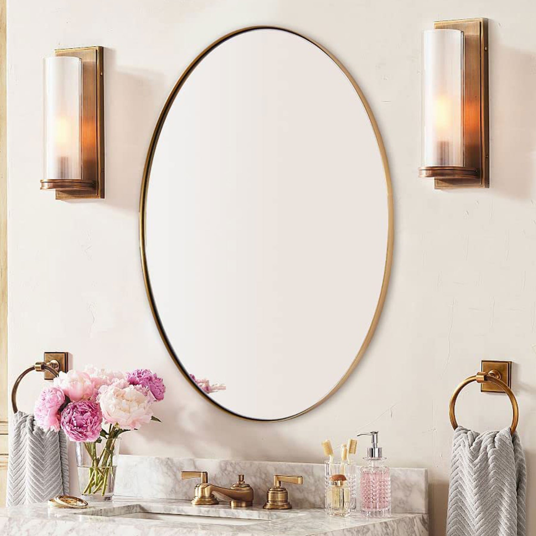 ANDY STAR Modern 20" x 28" Oval Wall Hanging Bathroom Vanity Mirror, Gold (Used)