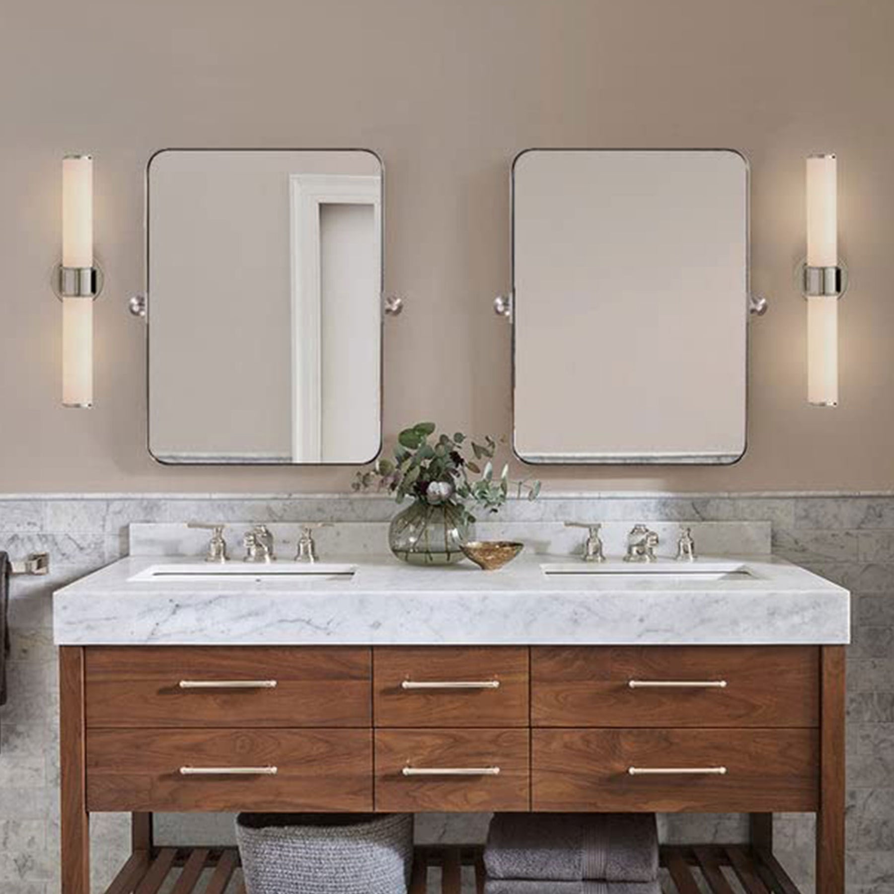 • Rectangle wall-mounting bathroom vanity mirror features an adjustable pivoting frame that allows you to tilt the mirror to custom angles