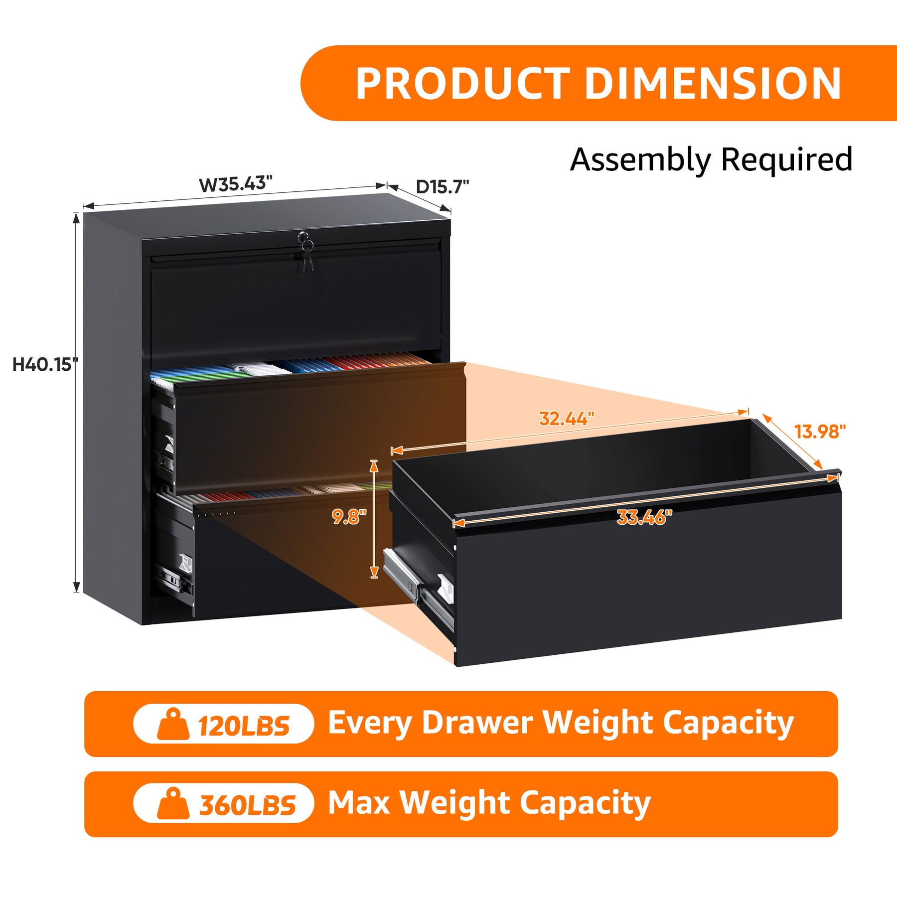 • Organize and protect important documents, work files, and more with this spacious 3-drawer filing cabinet