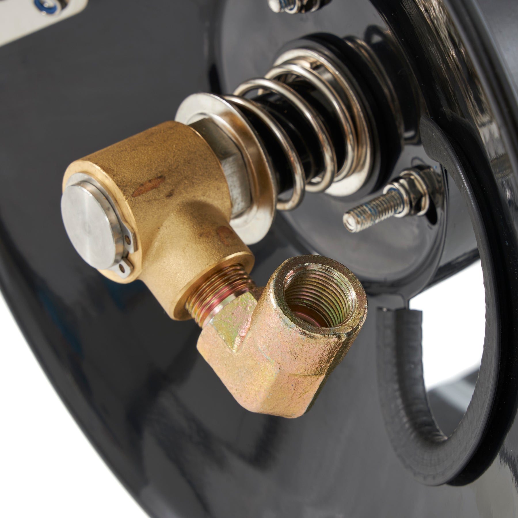 • Connects to hoses with a full-flow brass swivel outlet and 5-foot connecting hose, integrating the hose into the reel itself