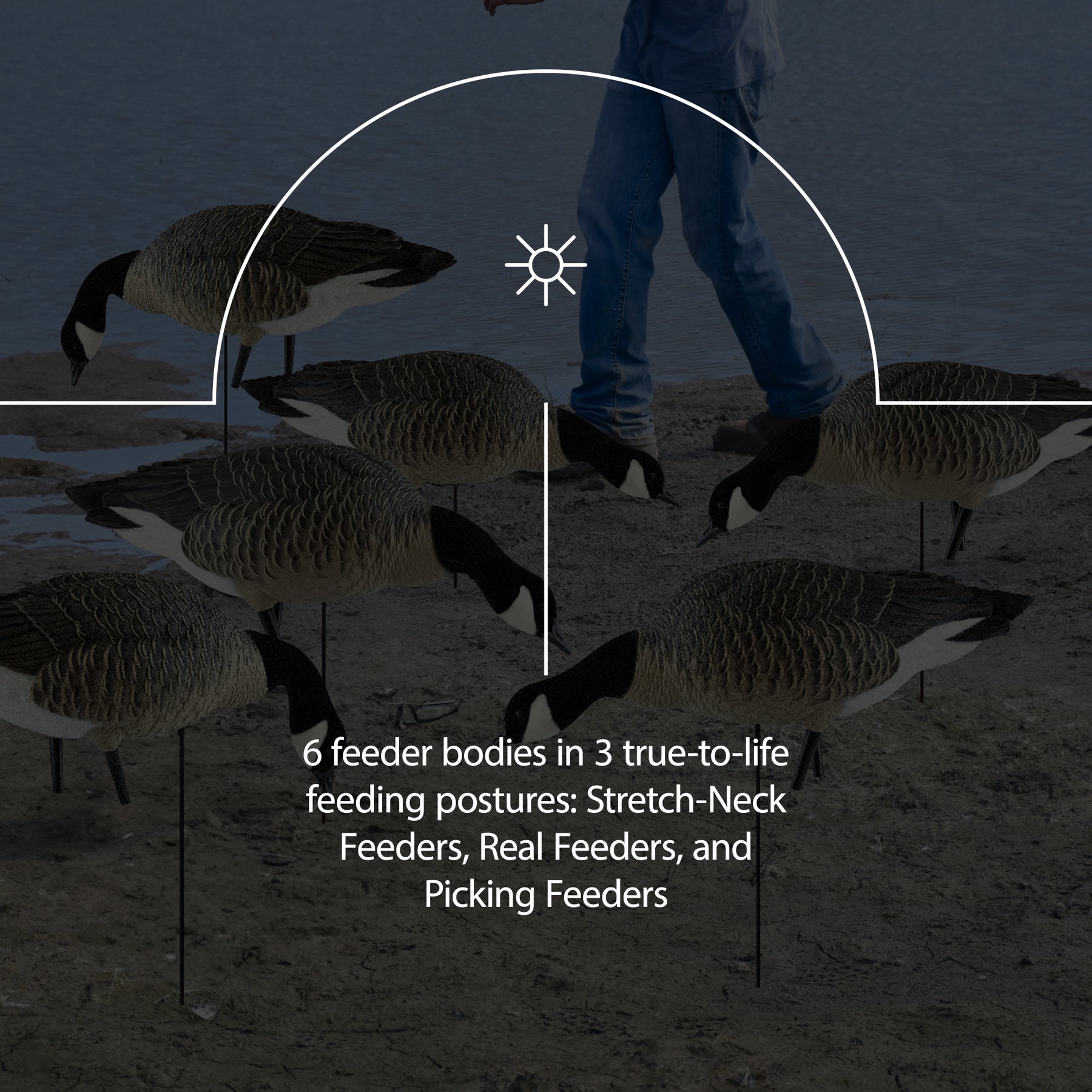• These decoys are 20 percent oversized for improved visibility, making them stand out and effectively attract geese