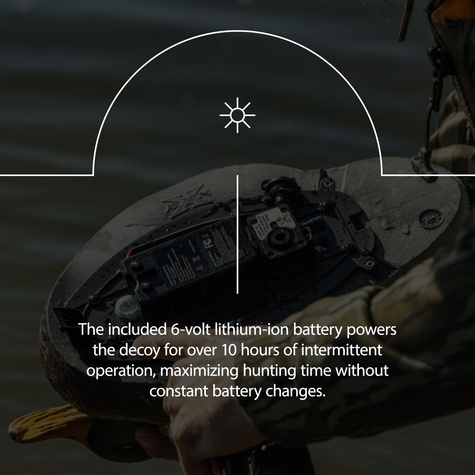 • Runs for 10+ hours in intermittent mode on a 6-volt lithium-ion battery, keeping you in the hunt longer