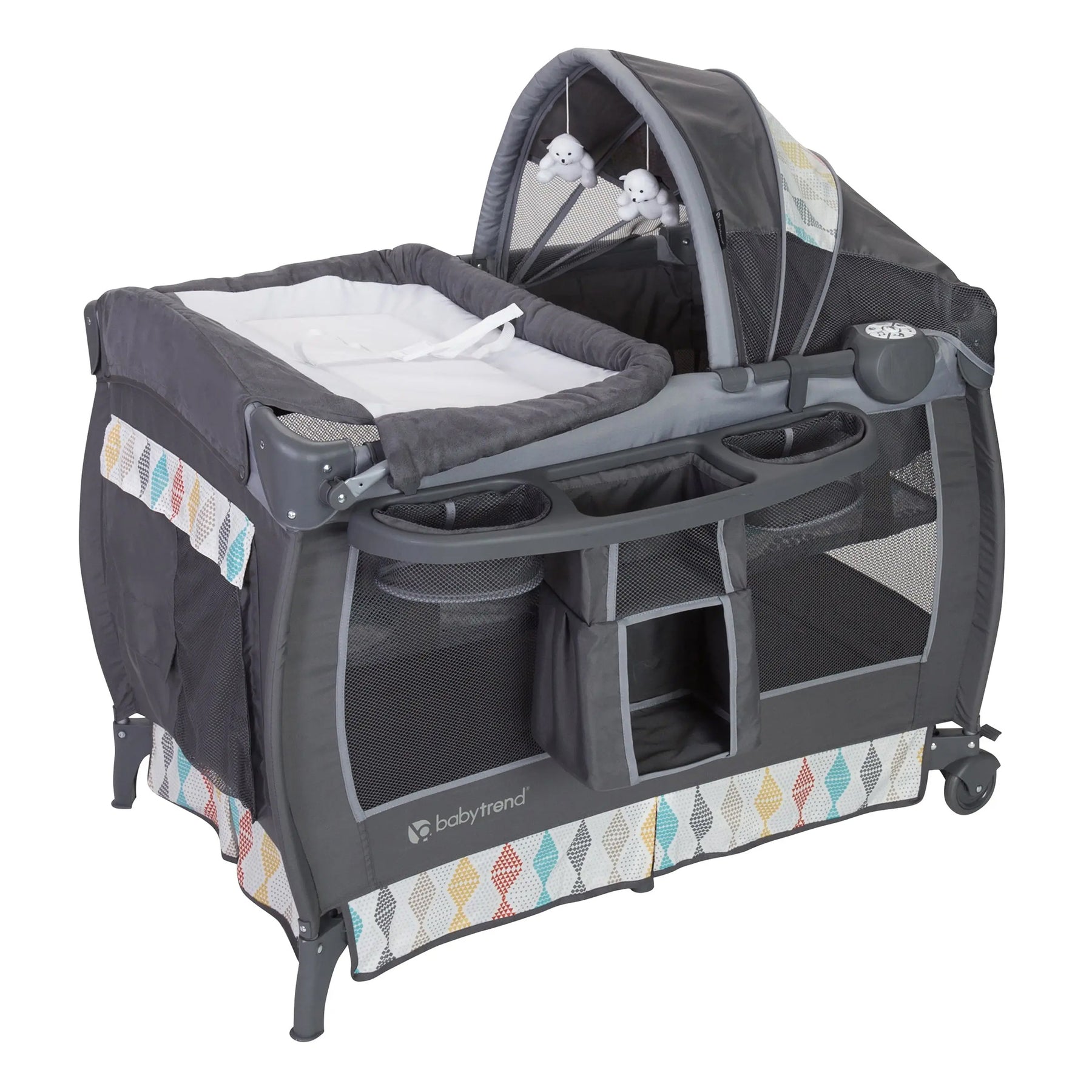 Equipped with an electronic music center, complete with soothing vibrations, a night light, and peaceful melodies to help lull your little one to sleep, this Deluxe III Playard has everything you need. And when it's time to pack up and head out, the included carry tote makes transportation a cinch. Whether you're setting up a cozy nursery or preparing for a family vacation, the Baby Trend Deluxe III Nursery Center Playard is the ultimate solution for your baby's needs.