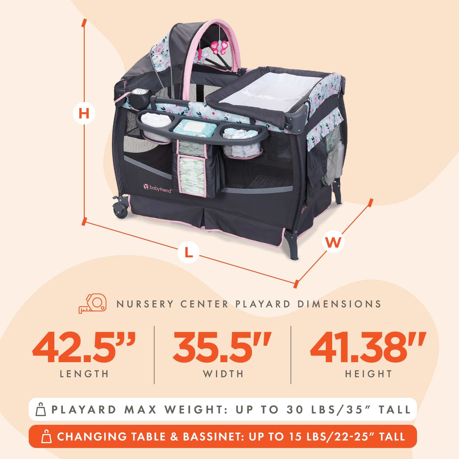 Baby Trend Deluxe II Nursery Center Playard Bassinet & Changing Table, Primrose