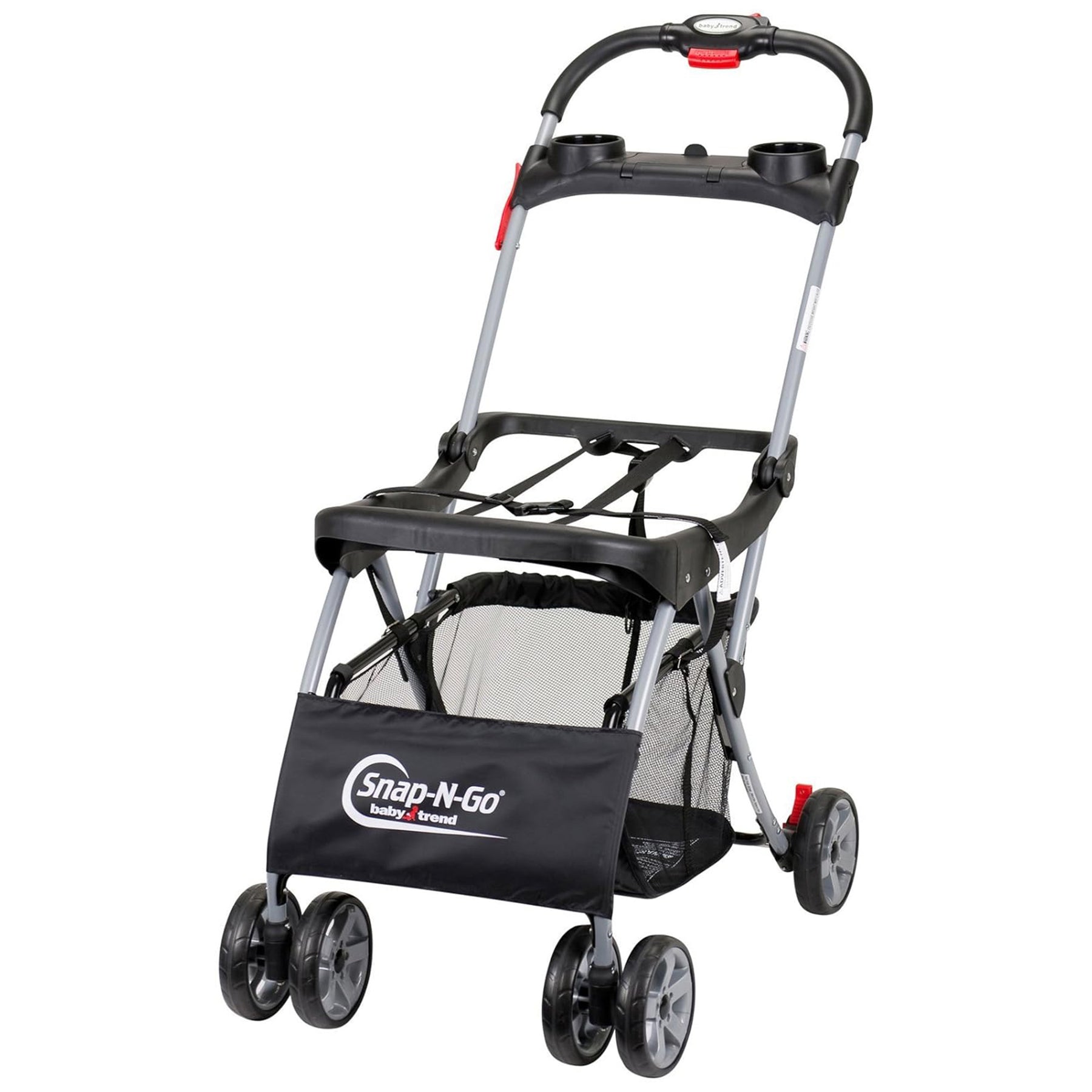 The best just got better! New from Baby Trend, the **Snap N Go EX** is made to fit a wide variety of infant car seat brands - instantly turn your car seat into a stroller. No need to disturb your baby during the transition from car to stroller, just snap your baby's car seat into the frame and off you go! With great additional features like a parent tray and extra large storage basket, the Snap N Go EX is ideal for families on the go. Designed to accommodate most infant car seats, this lightweight stroller frame features an easy one-handed fold that makes it simple to stow, even with a child in your arms.