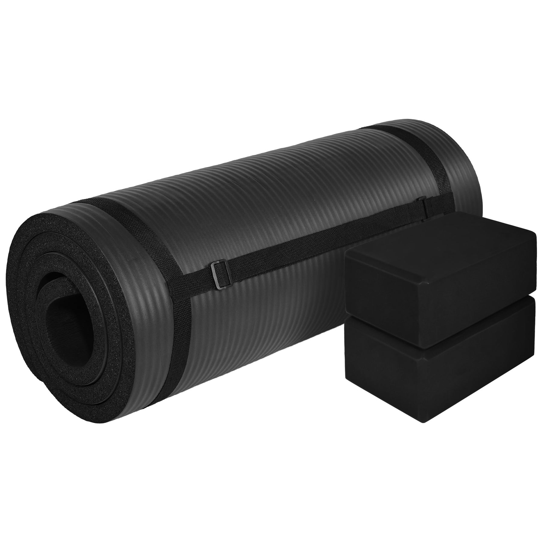 BalanceFrom 71"x24" Anti Tear Yoga Mat w/Strap, Pad & Blocks, Black(Open Box)