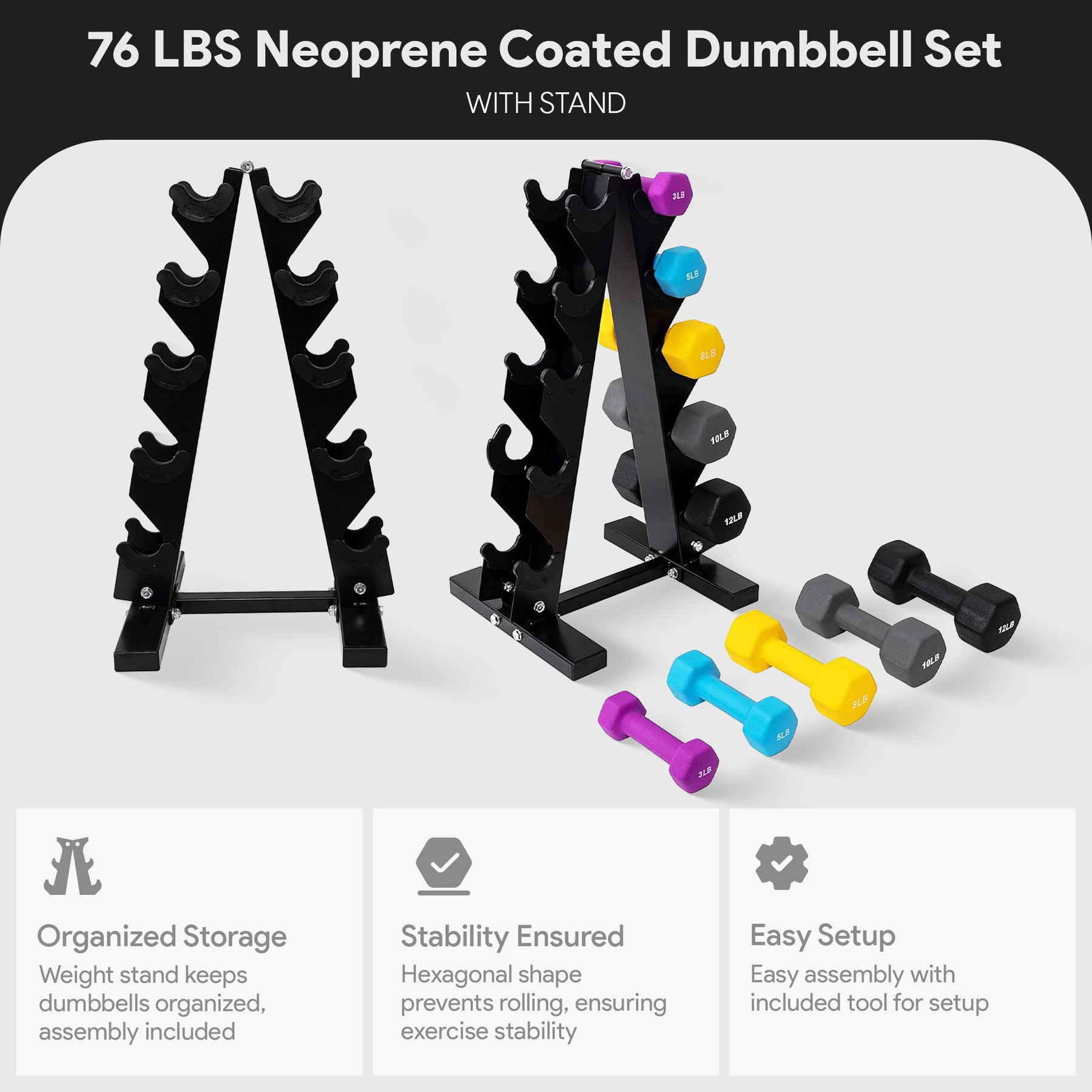 BalanceFrom Fitness 76lb Neoprene Coated Dumbbell Set w/Stand (Open Box)