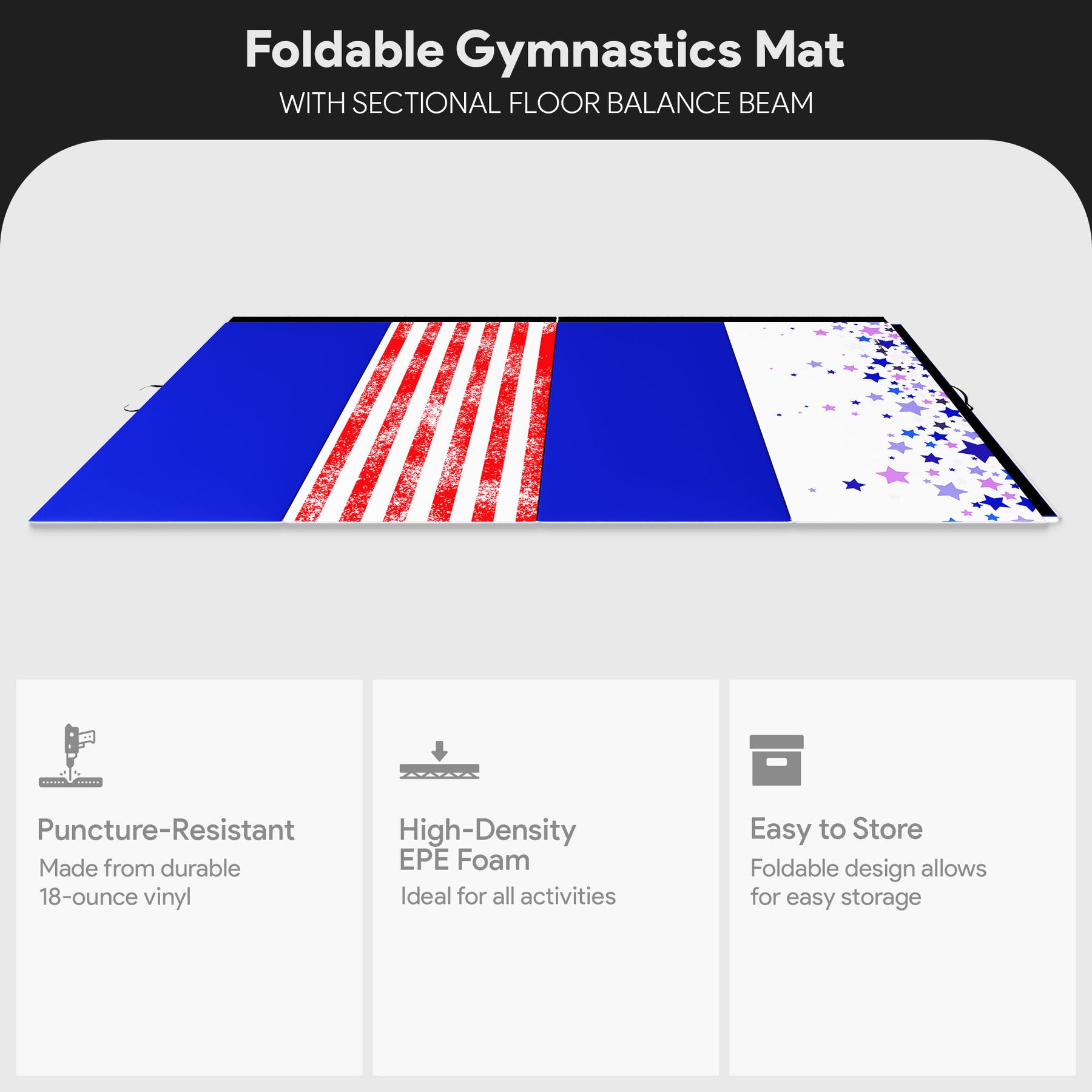• Balance beam is constructed from high-density firm foam to emulate competition-grade quality with their synthetic suede cover