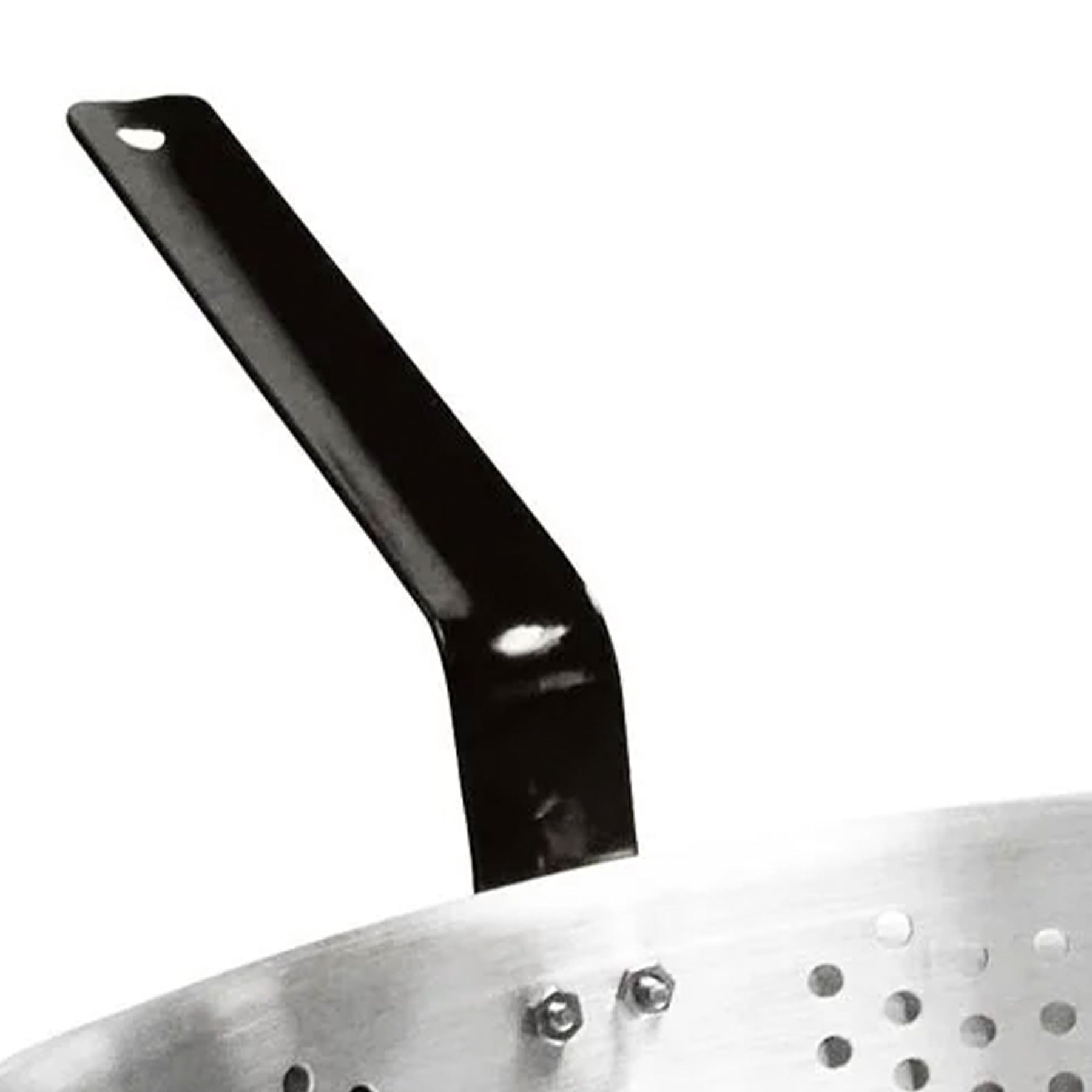 • Had heavy-duty riveted handles for secure handling of fry pot
