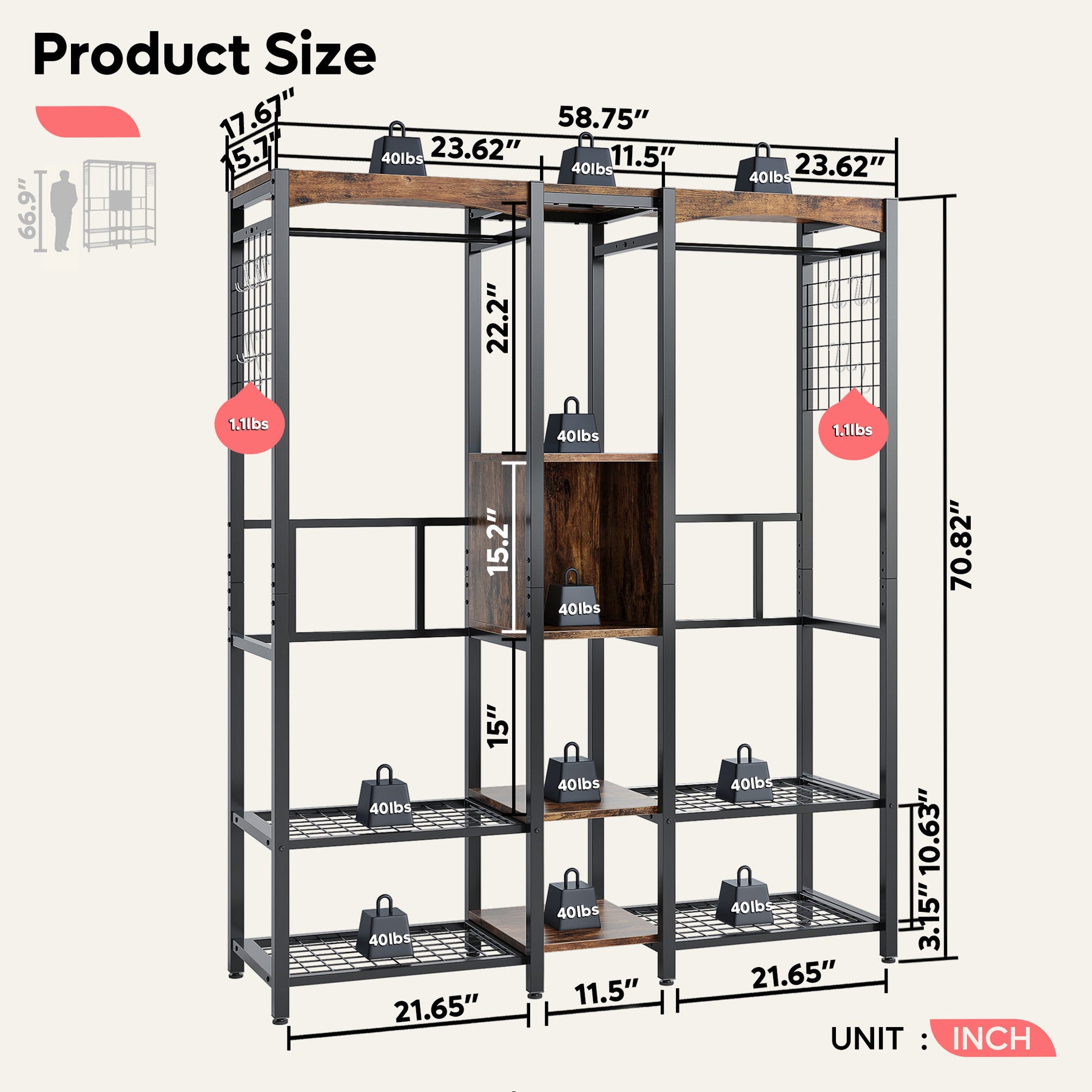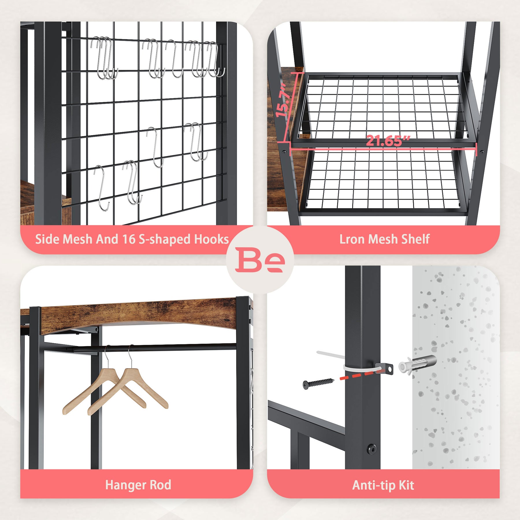 • Display shoes, bags, folded clothing, baskets, blankets, and more on 4 iron wire shelves that hold 40 pounds each