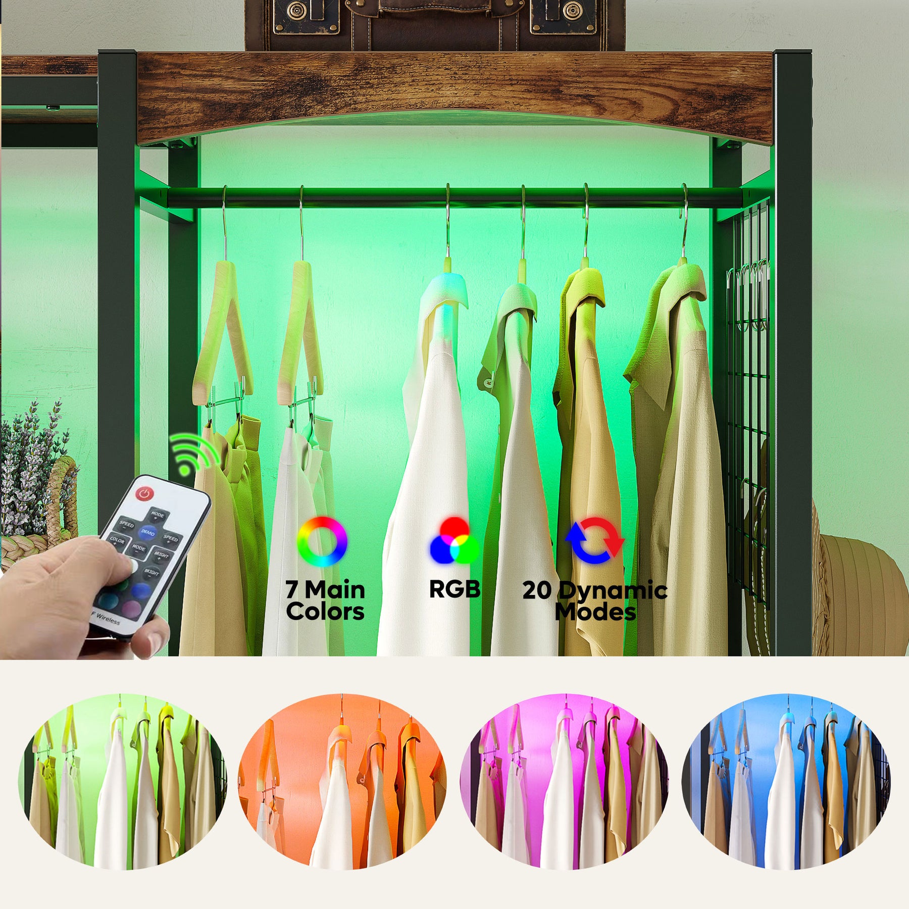 Bestier Metal Wardrobe w/Wood Shelves & Color Changing Lights, Brow (Used)