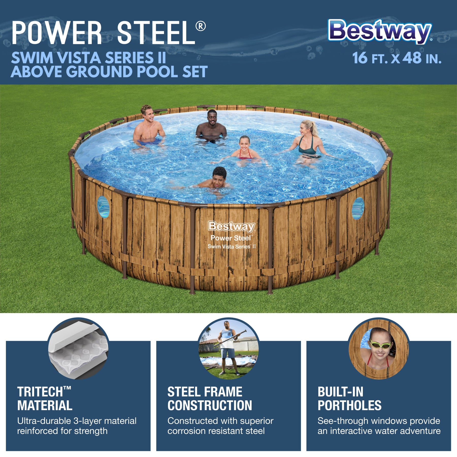 • PVC wall support band wraps around the pool for extra support
